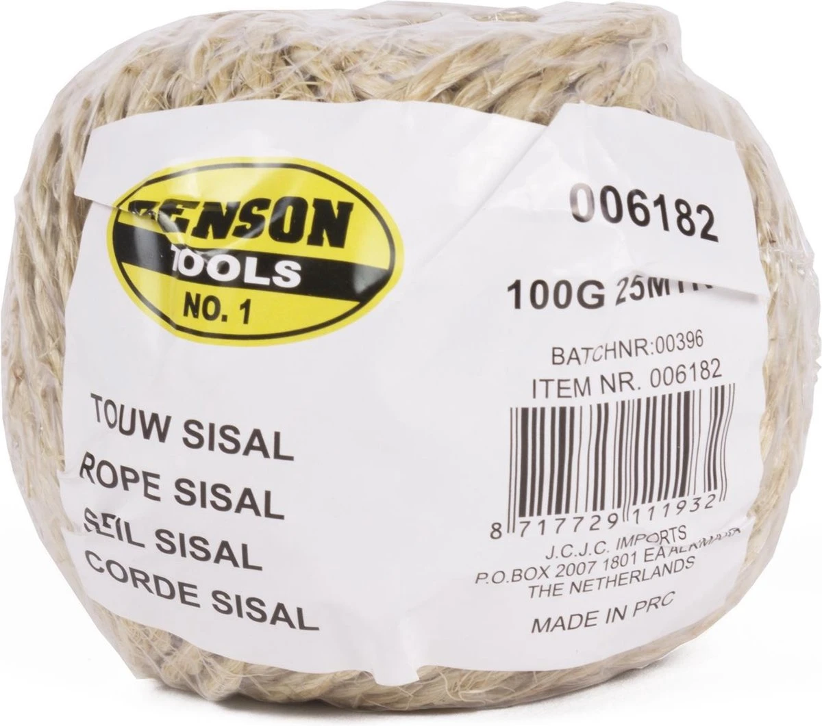 1 rolletje touw van 25 meter, gemaakt van sisal. Deze stevige touw is vervaardigd uit sisal, een tropische vezel die vaak te vinden is in touw, borstels, katten krabpalen etc. Handig voor gebruik in tuin, als hobbymateriaal en inpaktouw. Tuin/klus/hobby touw/draad, cremekleurig – Voor binnen en buiten gebruik. Materiaal: sisal. Lengte: 2500 cm / 25 m. Kleur: lichtbruin. gewicht: 100 gram.