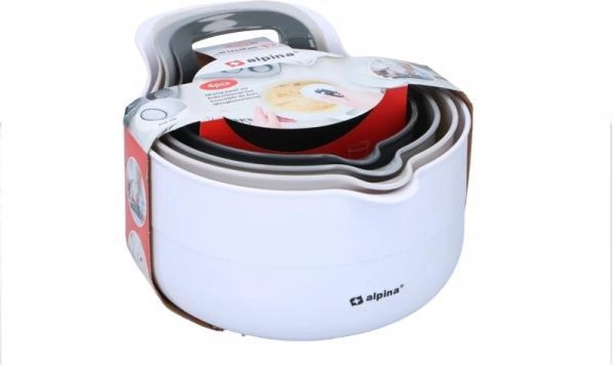 Hou je van bakken? Dan is deze mengkommenset van alpina een echte essential voor in je keuken. De set bestaat uit 4 beslagkommen in inhoud variërend van 1,2, 1,65, 2,4 en 3 liter. Je gebruikt ze om allerlei culinaire hoogstandjes te bereiden. Van het klutsen van een eitje tot het kloppen van slagroom, het mixen van beslag en het mengen van deeg.