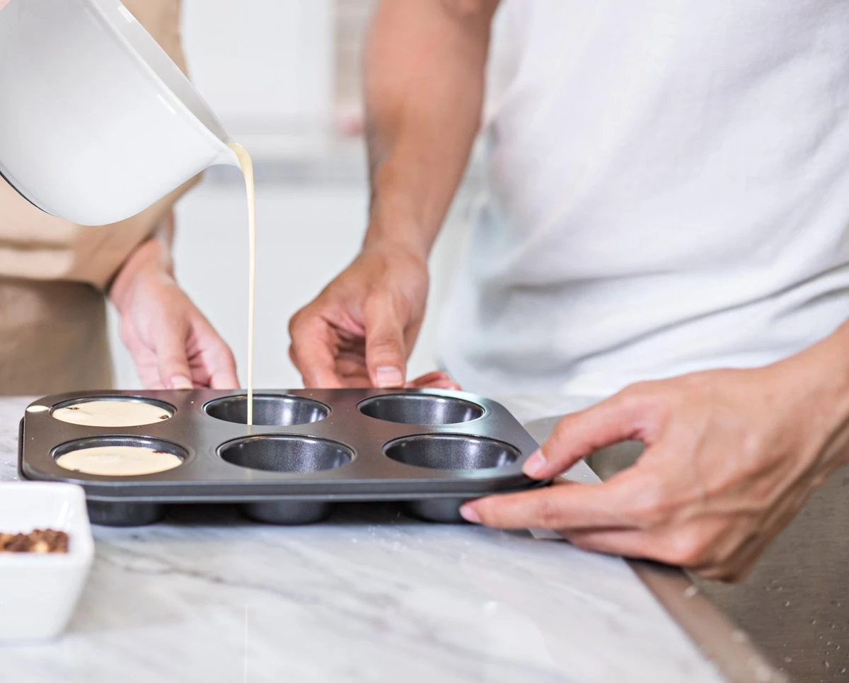 De mengkommen mogen in de magnetron. Je gebruikt ze dus ook om de boter alvast te smelten of om iets op te warmen. Klaar? Zet ze dan gerust in de vaatwasser.