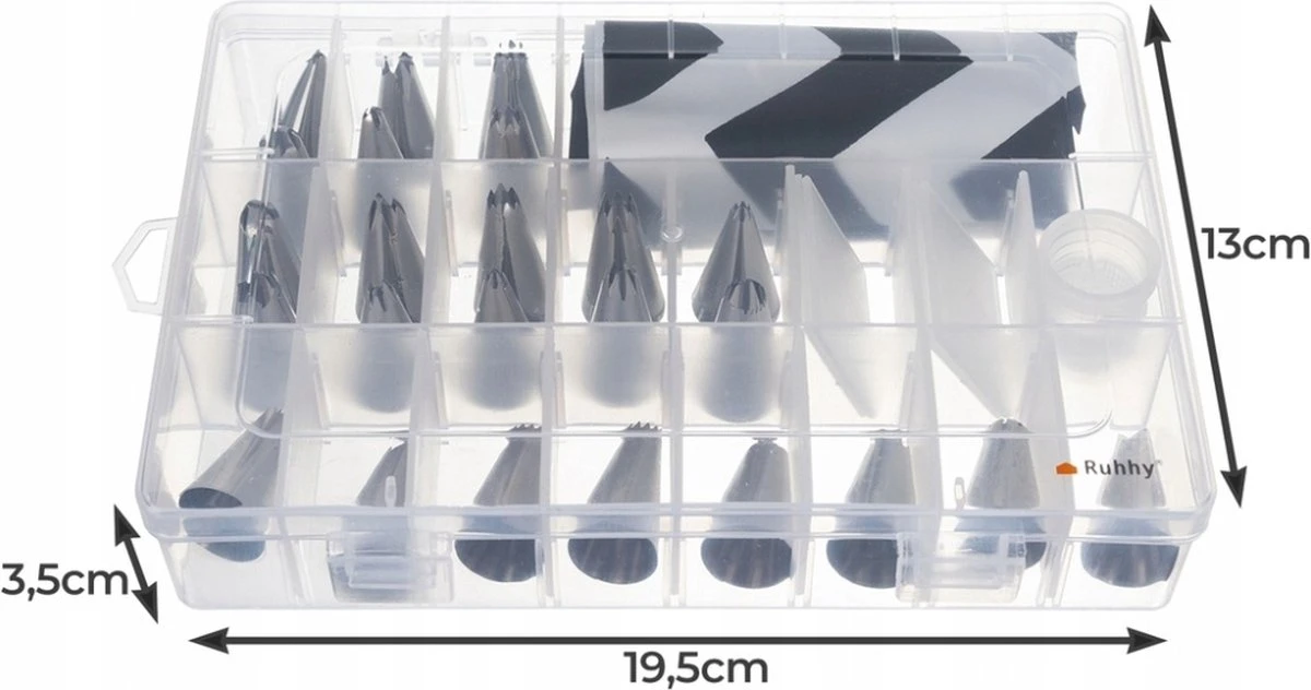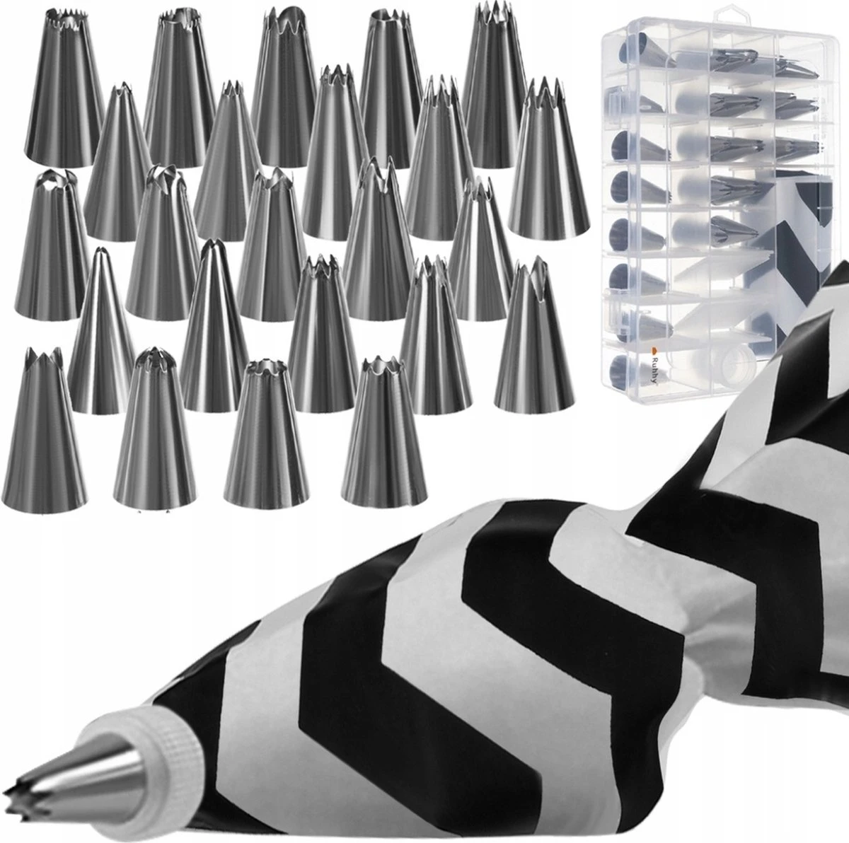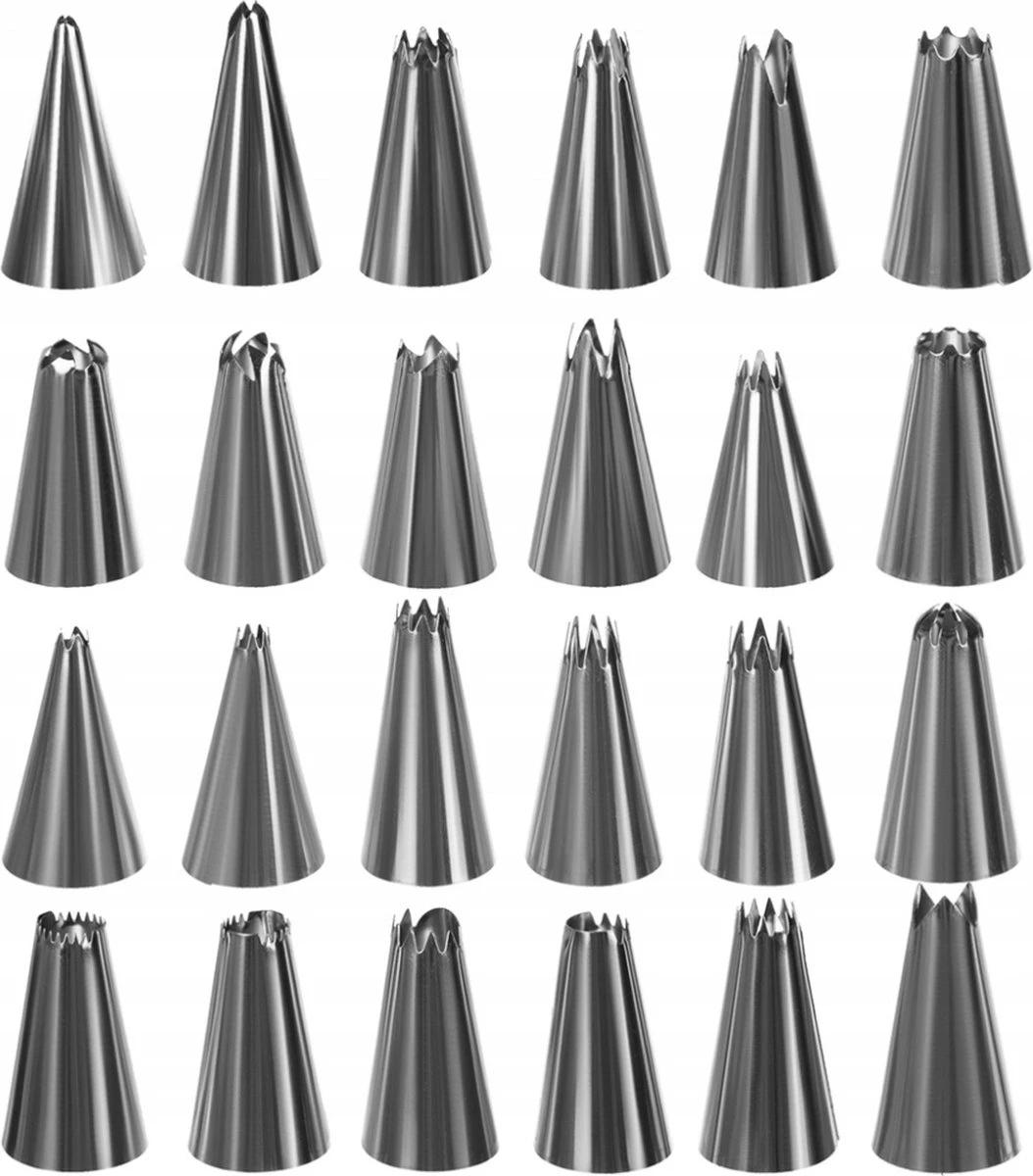 De tips in de set zijn gemaakt van hoogwaardig roestvrij staal van voedingskwaliteit. Het is duurzaam en gemakkelijk schoon te houden. De punten van dit type, die de taartdecorateur heeft, zijn ook zeer duurzaam en herbruikbaar, dus zelfs het uitknijpen van een dikkere crème zal dit geen probleem zijn!