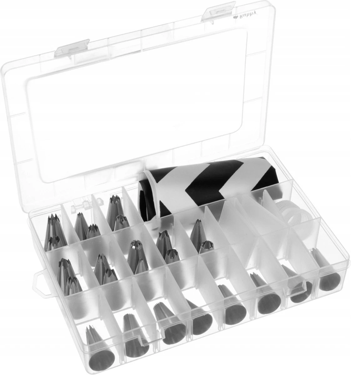 Naast een verscheidenheid aan mondjes voor het decoreren van gebak en desserts, is er ook een praktische tuit voor het decoreren van boter , wat de functionaliteit van de set verder vergroot.