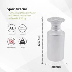 Veluw Zoutstrooier Aluminium – Professionele Zoutstrooier Horeca – Met Schroefdop – Ø8x(H)19,5cm