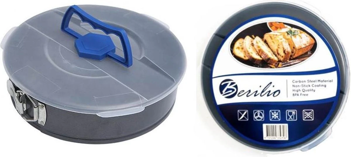 De ronde springvorm met afsluitbare deksel van Berilio beschikt over een losse bodem. De ronde taartvorm heeft een anti-aanbaklaag waardoor uw product niet blijft kleven aan de onderkant.