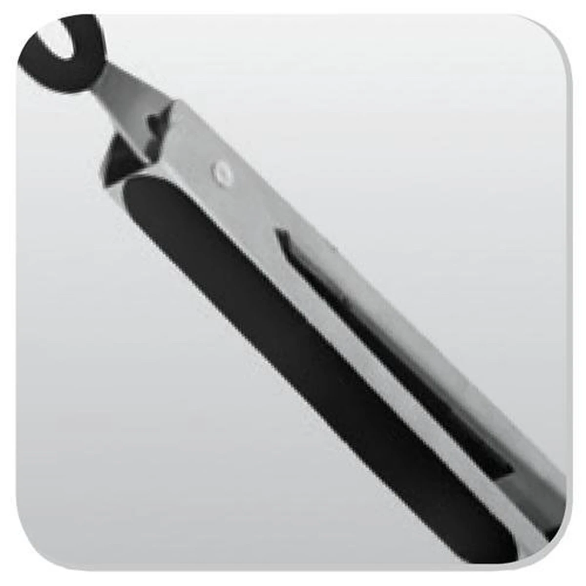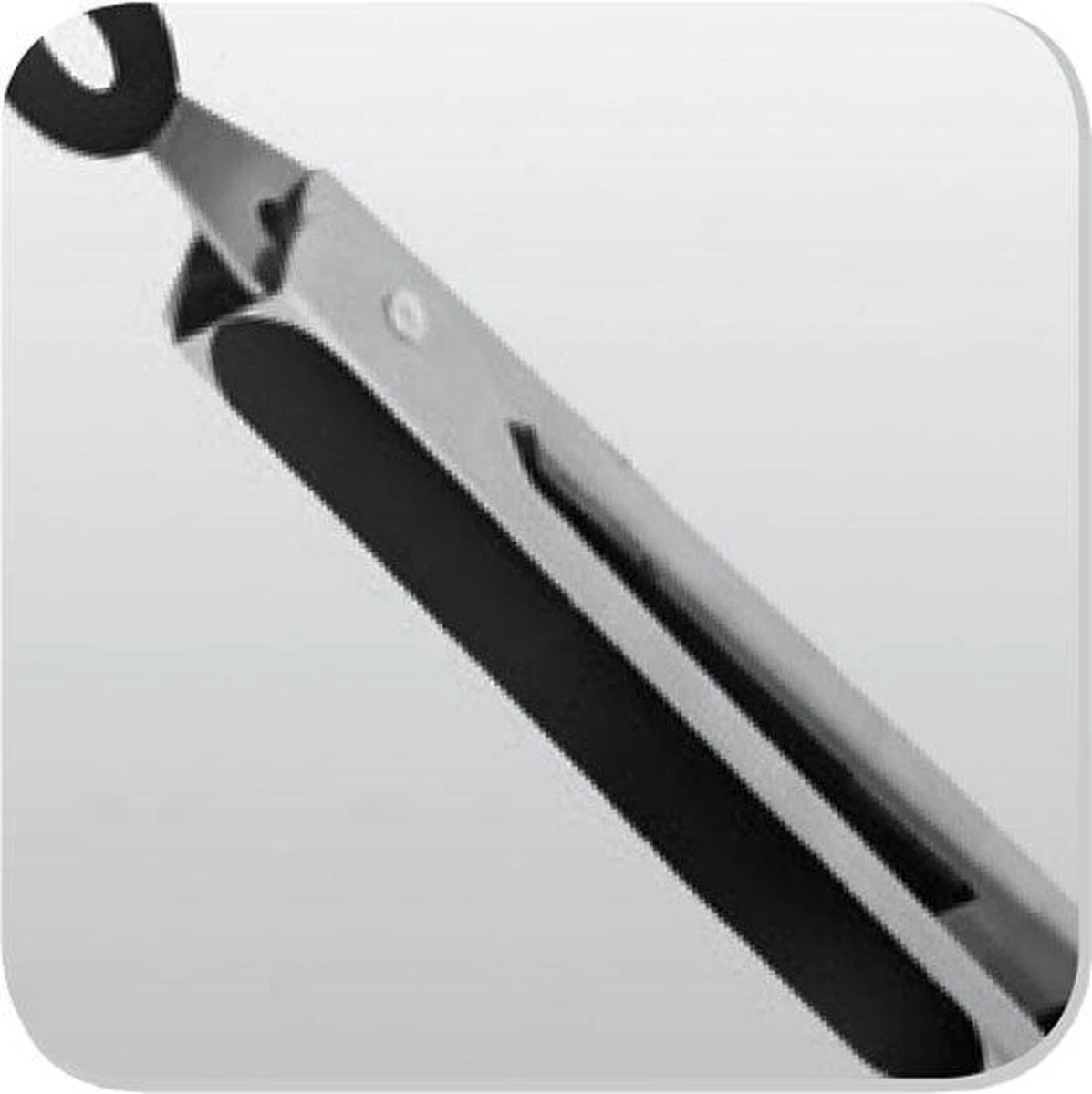 De platte tang blijft goed op het keukenblad liggen omdat deze antislip is. Daarnaast hang je Mrs. Gripper na gebruik gemakkelijk op met het ophangoog. Zo heb je de tang altijd bij de hand.