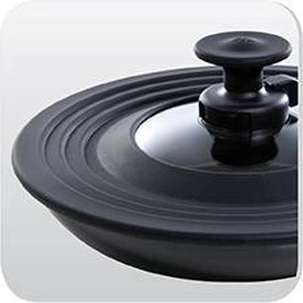 Door deze deksel verbrand jij jezelf nooit meer. Boven op de deksel zit een speciale ontluchtingsknop waardoor je lucht veilig kunt laten ontsnappen. Door slim design past de antispatdeksel perfect op pannen met een diameter van 22 tot en met 30 centimeter. De diameter van je pan meet je aan de binnenkant bovenaan de pan!