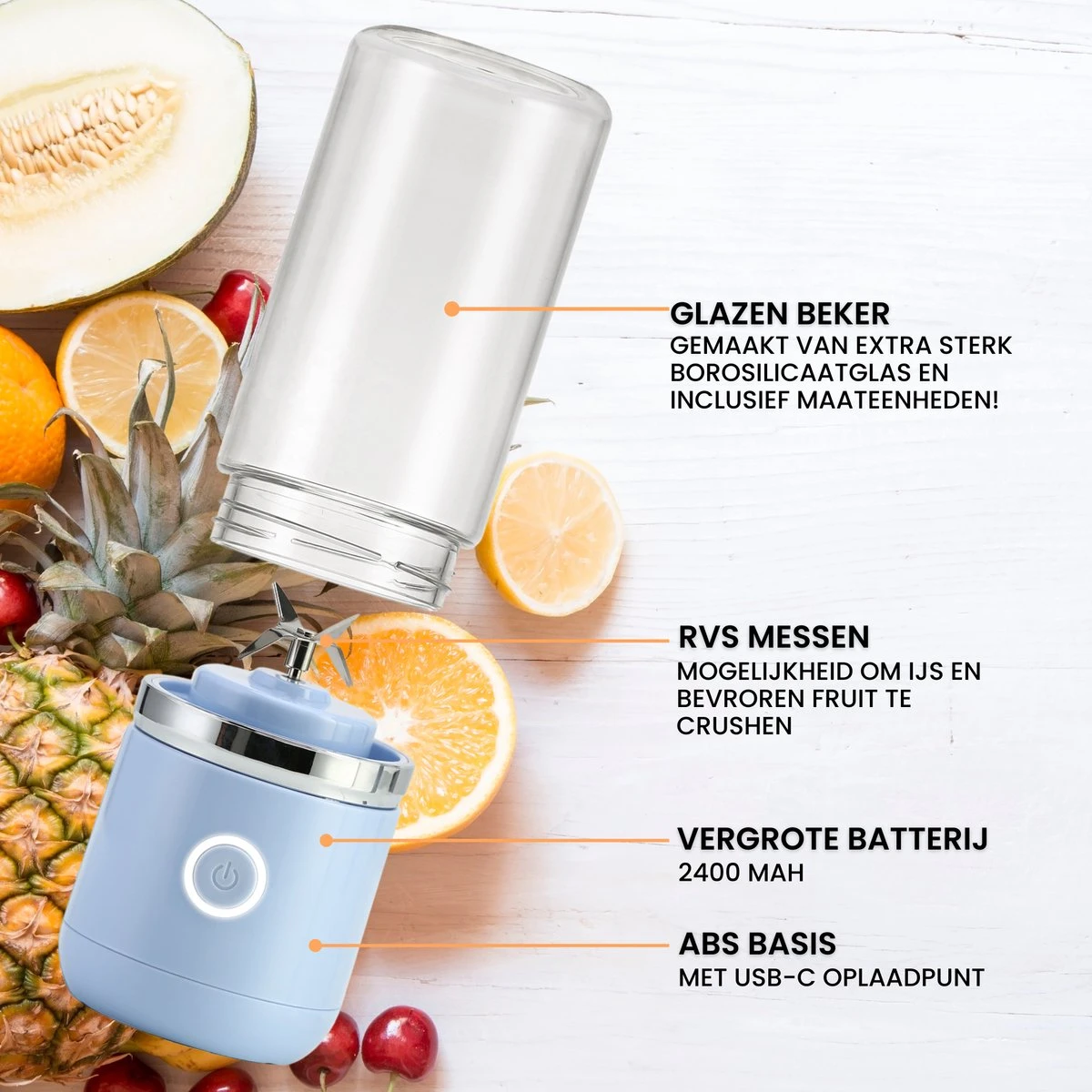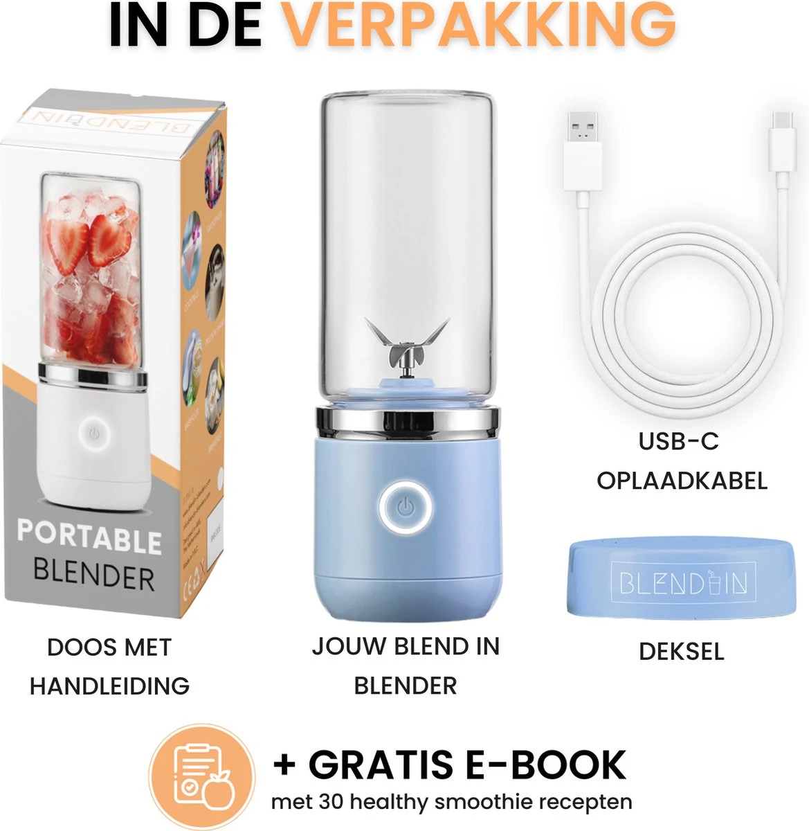 De krachtige portable blender werkt perfect voor het maken van 1-persoons sapjes, smoothies en ijskoffie’s, pannenkoekenbeslag, babyvoeding en nog veel meer! Deze blender komt van pas op ieder moment van de dag, van ontbijt tot diner! Op ieder gewenste plek!