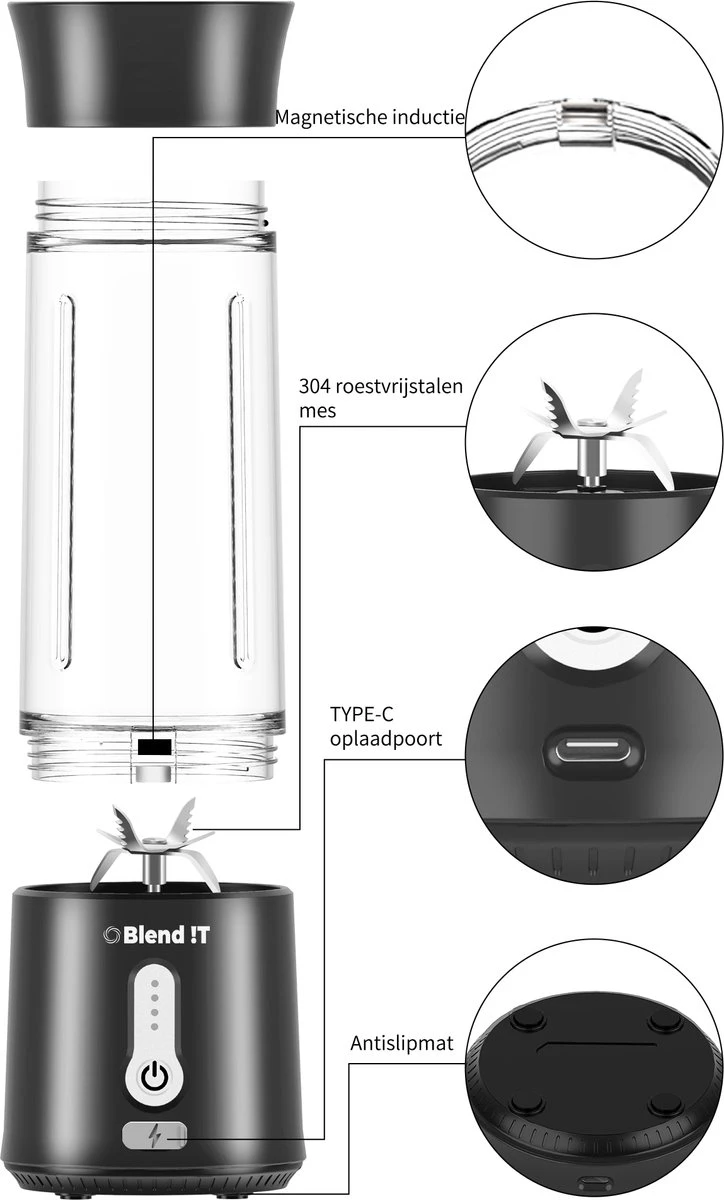 â–¶ Blend !T Draagbare Mini Blender To Go (Zwart)
