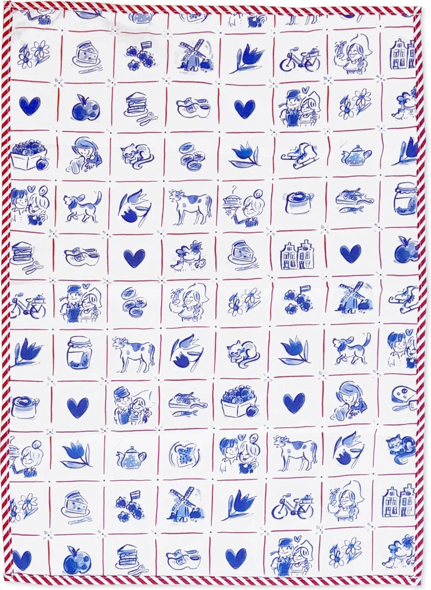 Met onder andere dit leuke theedoek met typische Blond illustraties in het Delfst Blond motief. De theedoek is perfect om je handen of de afwas mee te drogen. Combineer de theedoek nu met de andere 13 nieuwe Delfts Blond items of met de huidige items uit de collectie. Vooral leuk om te combineren met de ovenwant en het schort in dezelfde stijl. Zo vrolijk je de hele keuken op!
