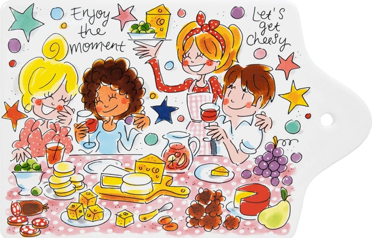 Dit vrolijke en vooral kleurrijke nieuwe kaasplankje is onderdeel van de Even Bijkletsen collectie. Door de vrolijke en kleurrijke illustraties maakt dit plankje jouw tafel nog gezelliger. Het design van het plankje is in lijn met de nieuwe Even Bijkletsen items maar is ook leuk om te combineren met de andere items van Even Bijkletsen of andere collecties. Dit plankje is net iets groter dan onze huidige plankjes. Leuk om de borrelhapjes op te serveren maar ook leuk voor zoete snacks!