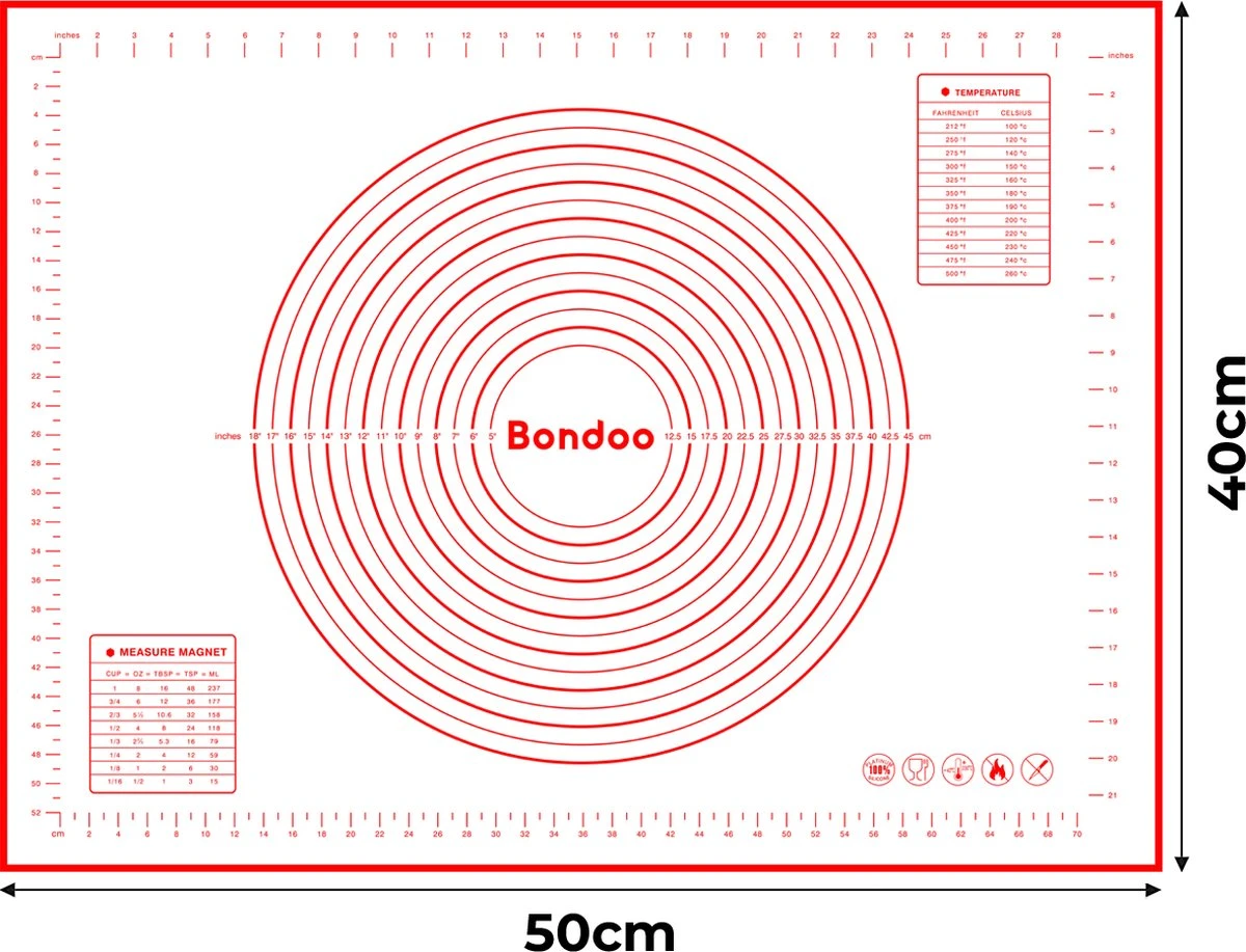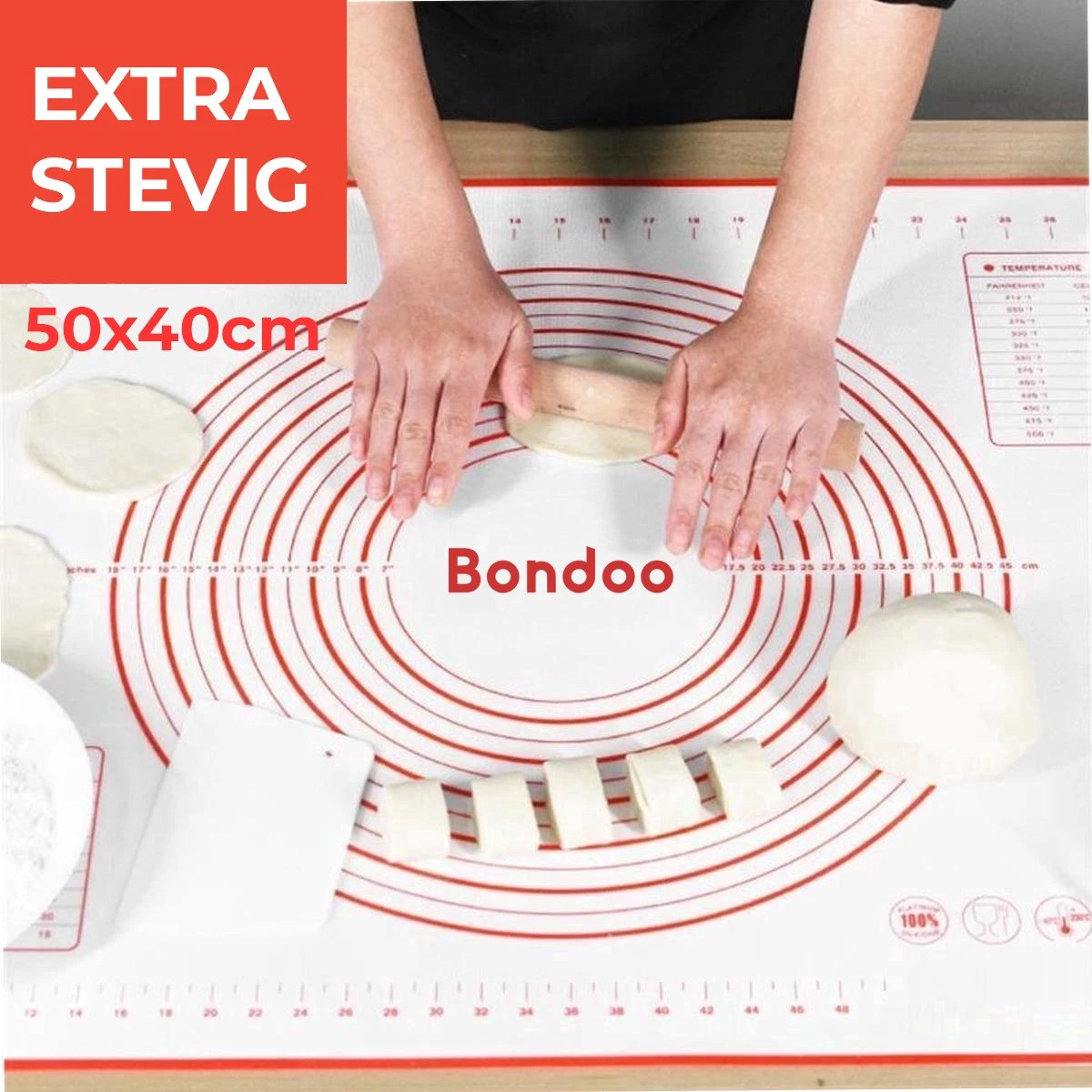 Bak je favoriete koekjes, taarten, cakes, cupcakes of muffins gemakkerlijk dan ooit met de Bondoo Siliconen Deegmat! Niks blijft meer plakken aan de anti-kleef mat. Neem hem gemakkelijk af met een doekje en hij is weer zo goed als nieuw! Deze siliconen bakmat is onmisbaar voor iedereen die dol is op bakken en koken. De bakmat is te gebruiken als de perfecte ovenmat maar ook als antislip werkoppervlak. Dat komt omdat aan deze antislip ovenmat geen etensresten hechten en deze hittebestendig is tot 230 graden celcius. Het is daarom een hygienische musthave en hét alternatief voor bakpapier voor iedereen die graag in de keuken bezig is. Vaarwel schuivend en terugkrullend bakpapier!