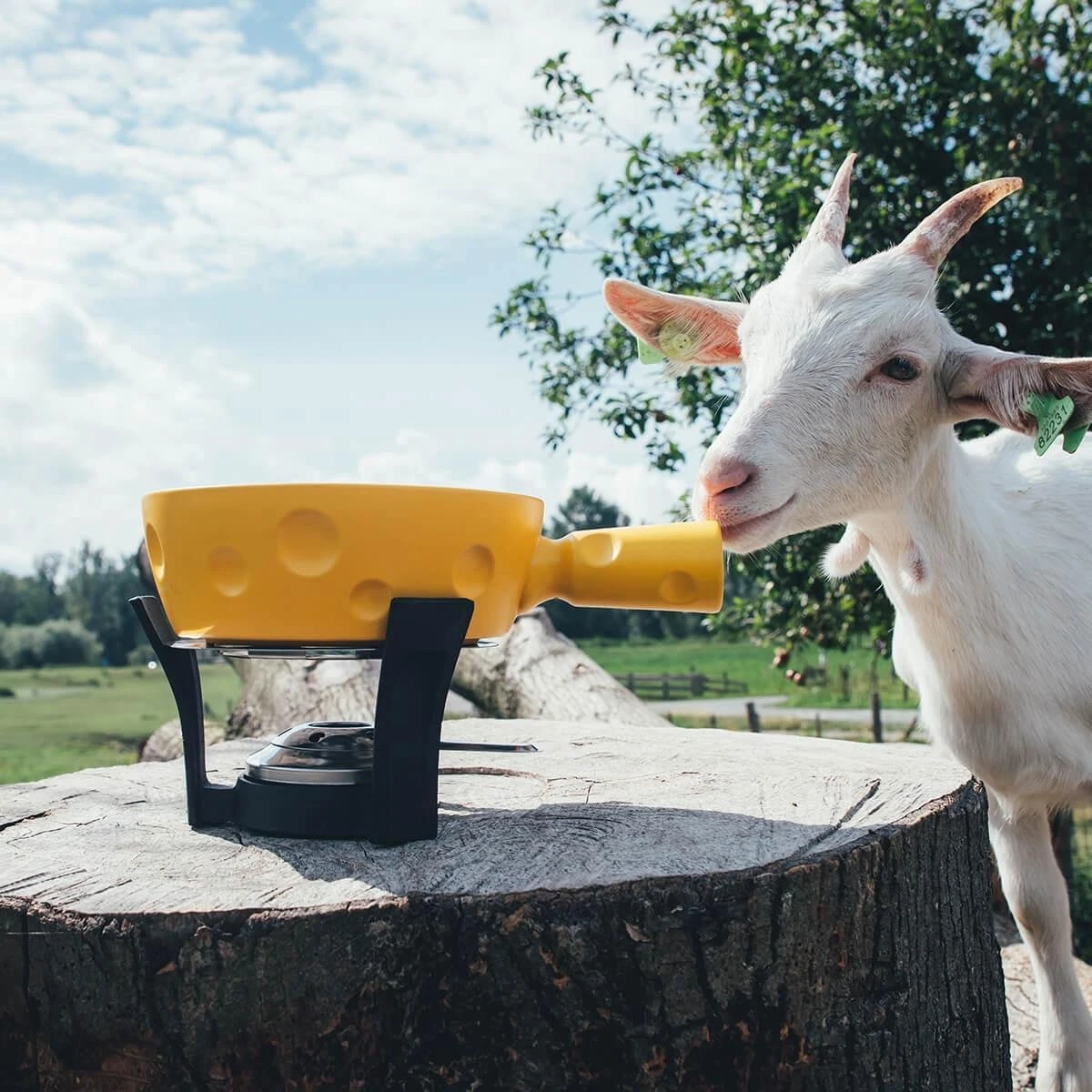 De vuurvaste fonduepan – met een inhoud van 1,3 liter – is zo gevormd dat het op een echte gatenkaas lijkt en is geschikt voor gebruik op het gasfornuis. Het gietijzeren onderstel en de brander houden de kaasfondue voor je warm. De set bevat ook nog zes fonduevorken en een handige brander (exclusief brandvloeistof/brandgel).