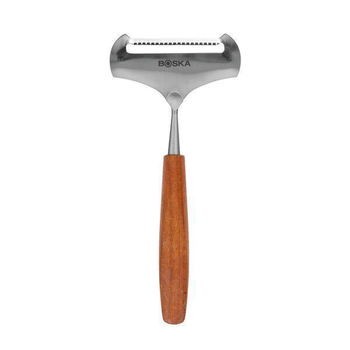 Met de Kaasschaaf Zacht Vienna van BOSKA maak je zeer eenvoudig de lekkerste plakken jonge kaas. Door het korte schaafblad blijft de kaas namelijk niet kleven en krult het niet op. Zo glij je soepel met deze schaaf met gerookt beukenhouten handvat door elke zachte en half harde kaas heen.