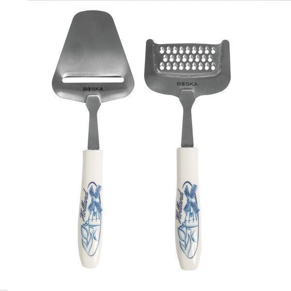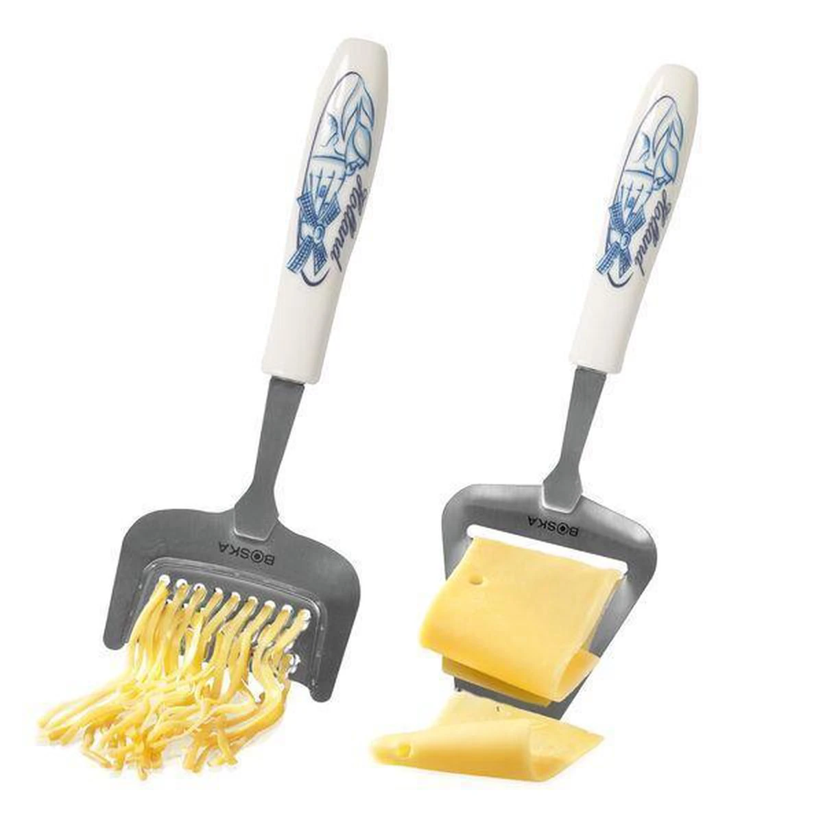 Half harde en harde kazen zijn perfect geschikt voor de Kaasset Delfts Blauw van BOSKA. De handvaten zijn uitgevoerd in het kenmerkende Delfts Blauw en hebben een typisch Hollandse print. Fijn om te krijgen. Mooi om te geven. Aan vrienden, familie, of helemaal leuk: je internationale (zaken) kring!