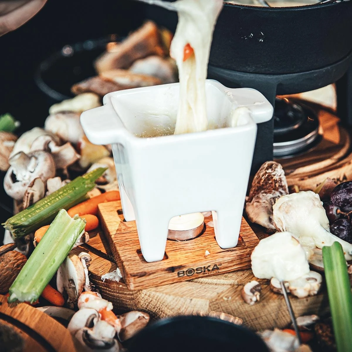 Geniet van de lekkerste kaasfondue met de Tapas Fondue Bianco van BOSKA. Deze complete fondueset biedt genoeg ruimte voor 175 gram aan saus of kaasfondue. Genoeg om met twee personen van te snacken. Perfect voor een romantisch avondje met z’n tweeën of als borrelhapje bij een feest.