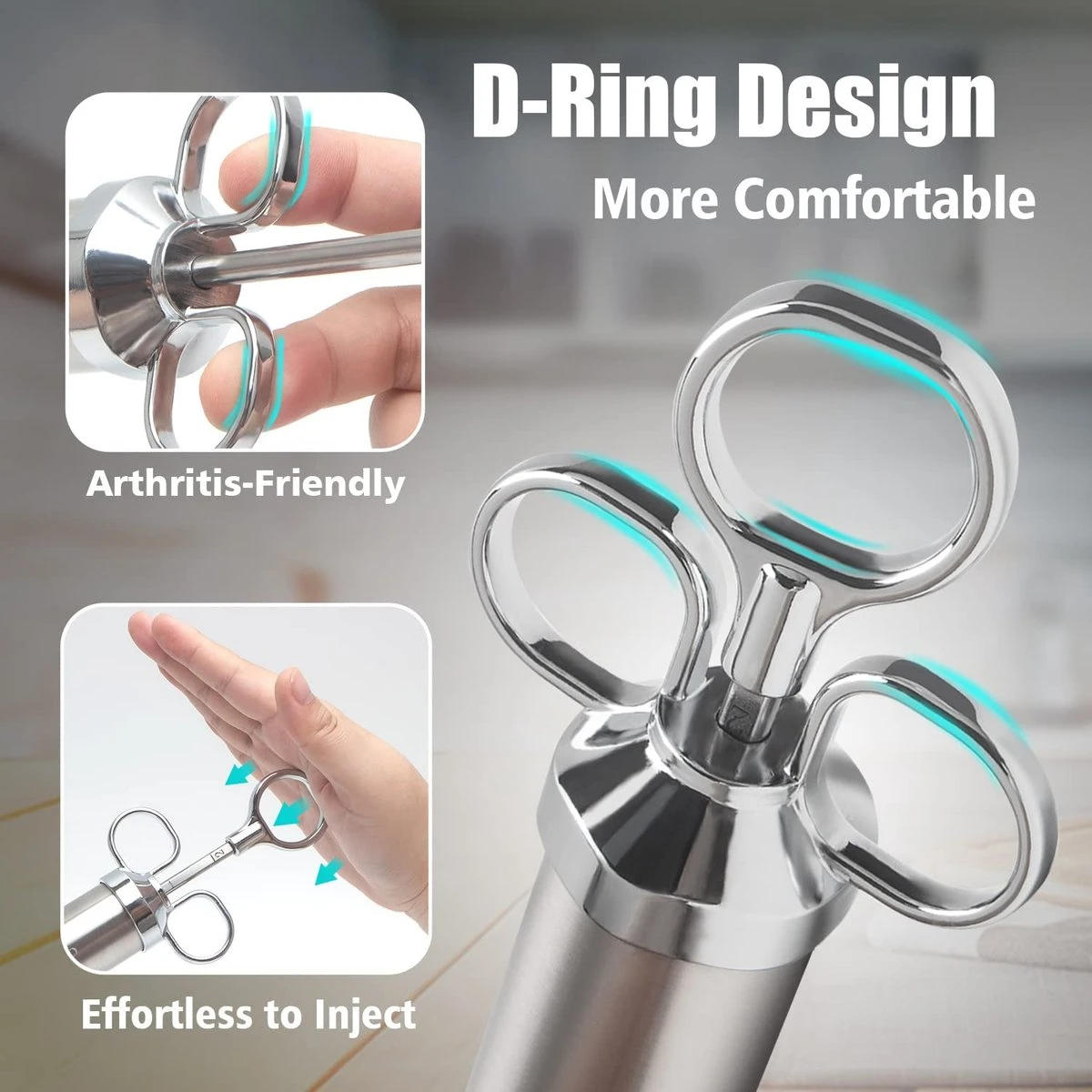 GEMAKKELIJK TE GEBRUIKEN EN VAATWASMACHINEBESTENDIG: Ergonomisch draadontwerp, gemakkelijk te monteren of uit elkaar te halen. Het lichaam van de 59 mL spuit minimaliseert de behoefte aan navullingen; handvat met drie ringen biedt een comfortabele grip en gemakkelijke drukregeling; 4 verwisselbare kalkoennaalden met meerdere gaten voor diepe penetratie en perfecte sausverdeling, zoals dikke marinades of pekel.