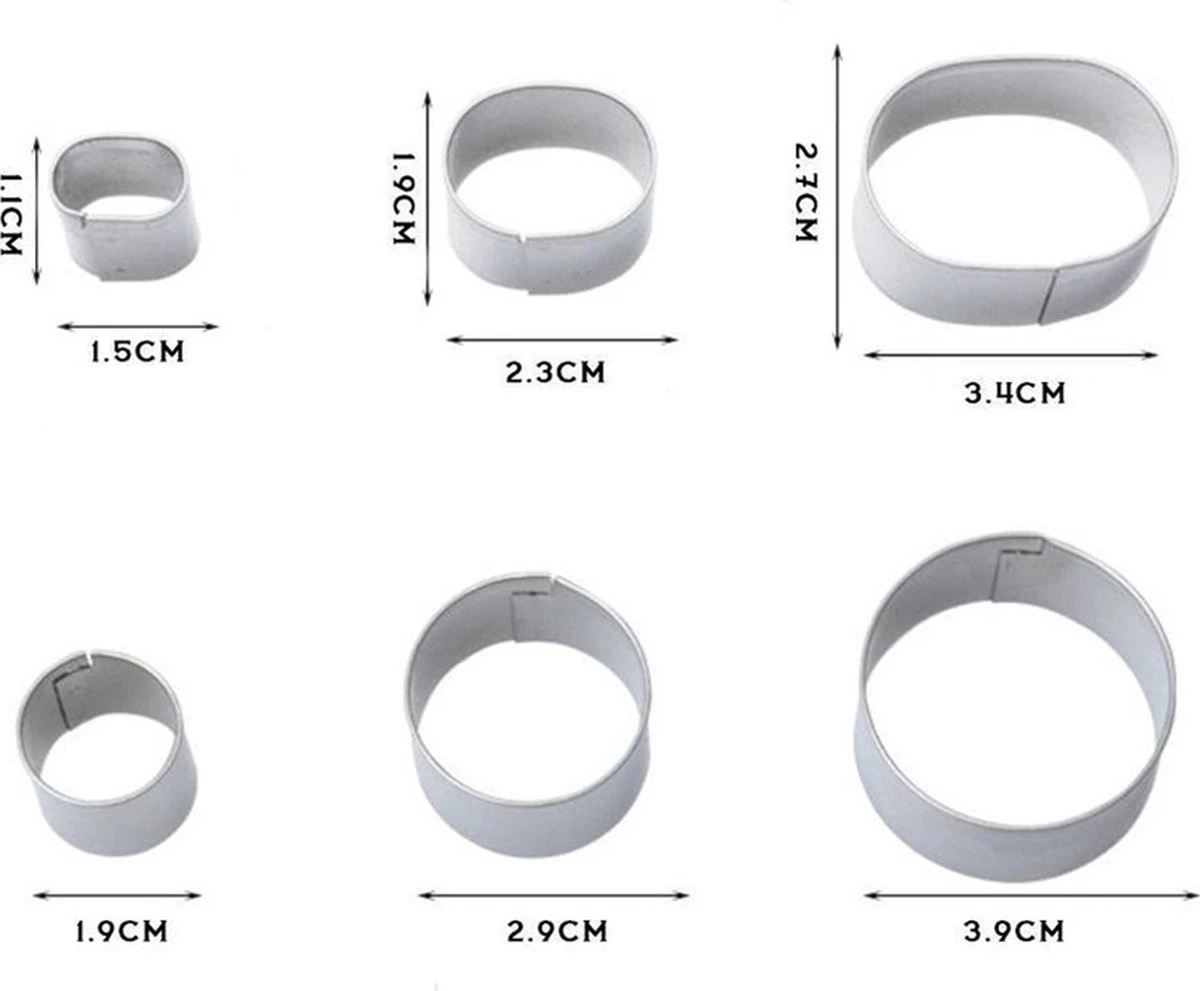 – Kleine cookie cutter set wordt veel gebruikt, waaronder het snijden van koekjes, gebak, deeg, fondant, empanadas, crumpets, cakes, canapes, donuts, groenten, Engelse muffins, brood, ravioli pasta.