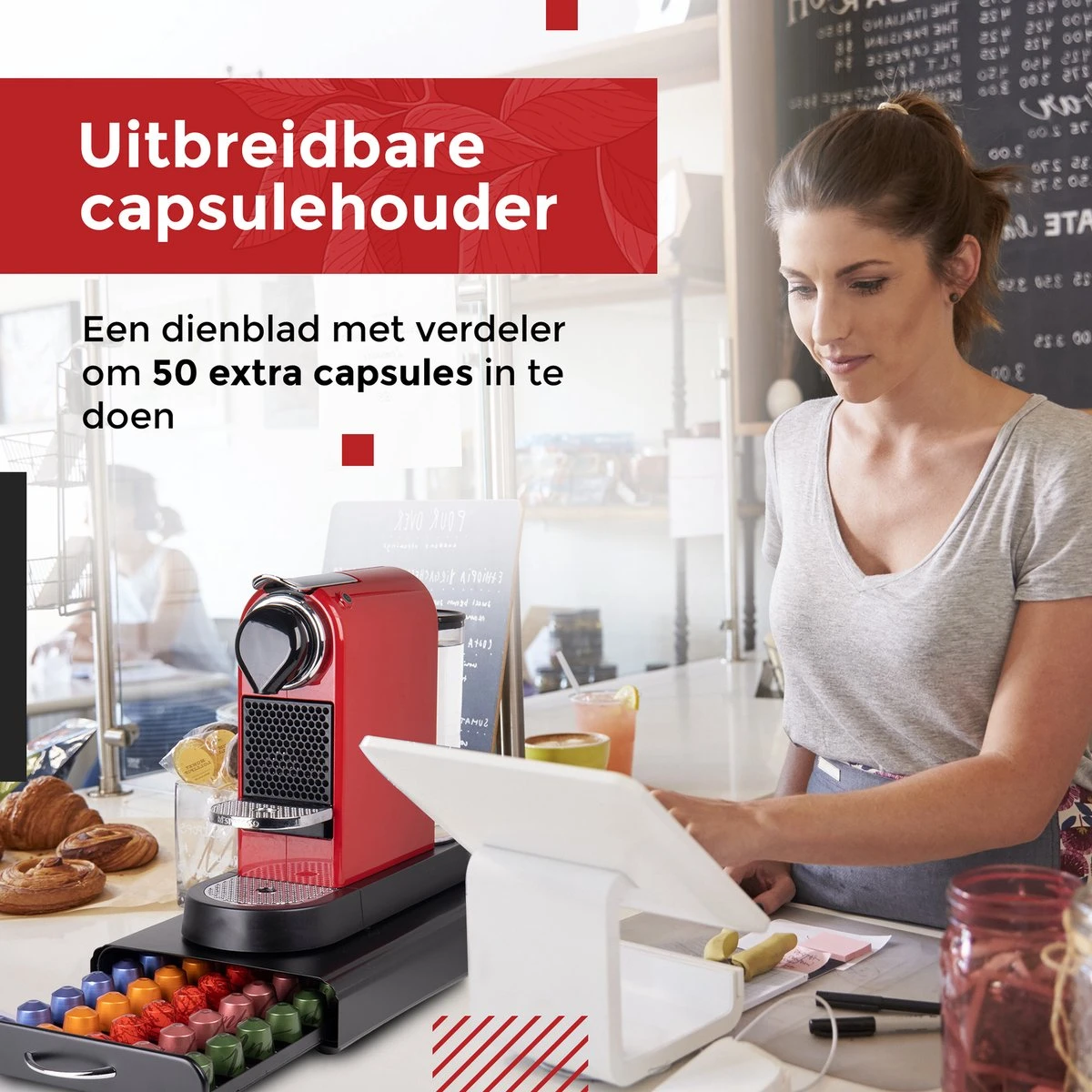 - Uitschuifbare lade met ruimte tot wel 50 capsules