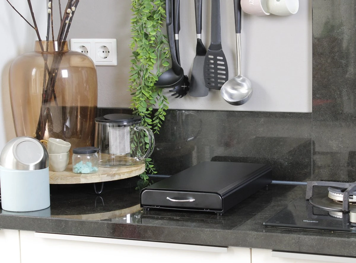Je kunt je koffiezetapparaat bovenop de lade plaatsen om ruimte te besparen. De lade oogt zeer modern en past vrijwel in iedere keuken. Bovendien biedt de koffie capsulehouder een duidelijk overzicht van alle verrukkelijke koffie smaken die je in huis hebt. Super handig dus.