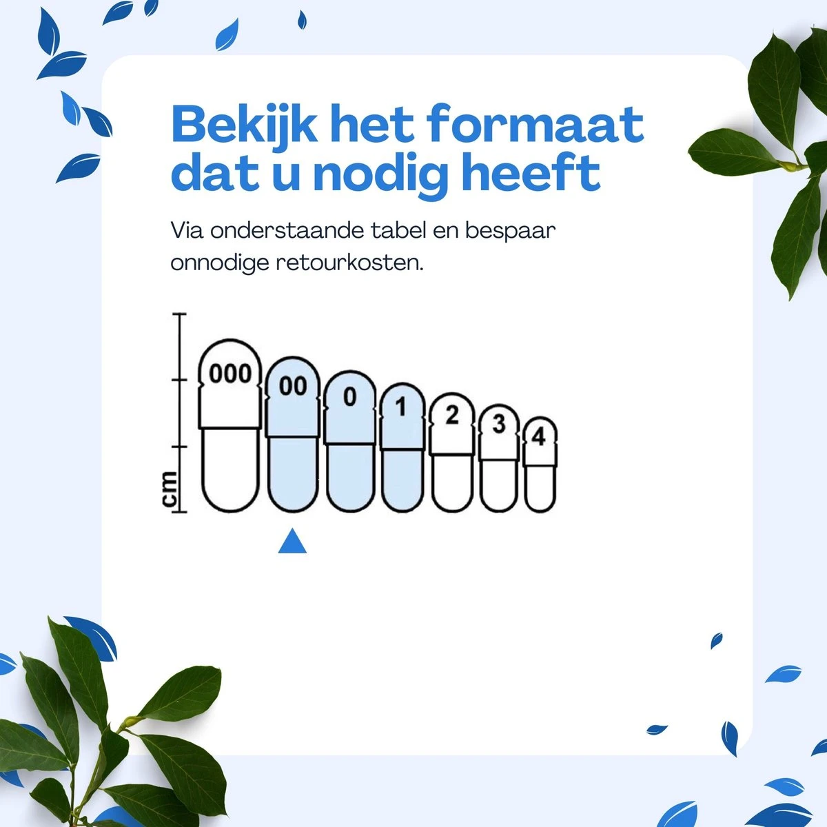 Let op! Kijk voor U besteld eerst in het matentabel welke maat capsules U nodig heeft, dit scheelt een hoop onnodige retouren.