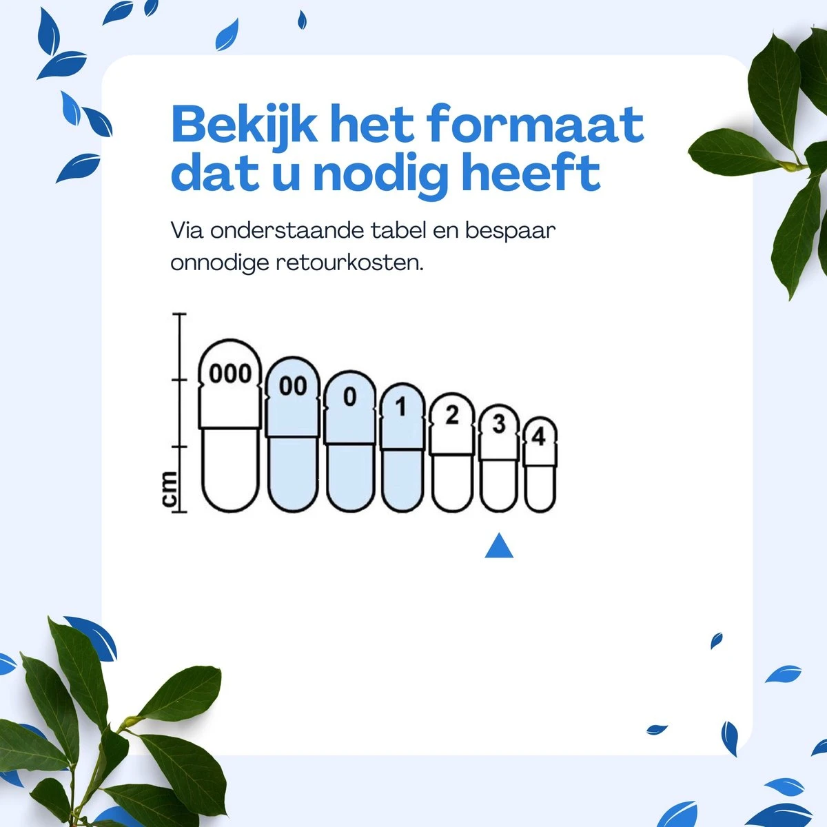 Let op! Kijk voor U besteld eerst in het matentabel welke maat capsules U nodig heeft, dit scheelt een hoop onnodige retouren.