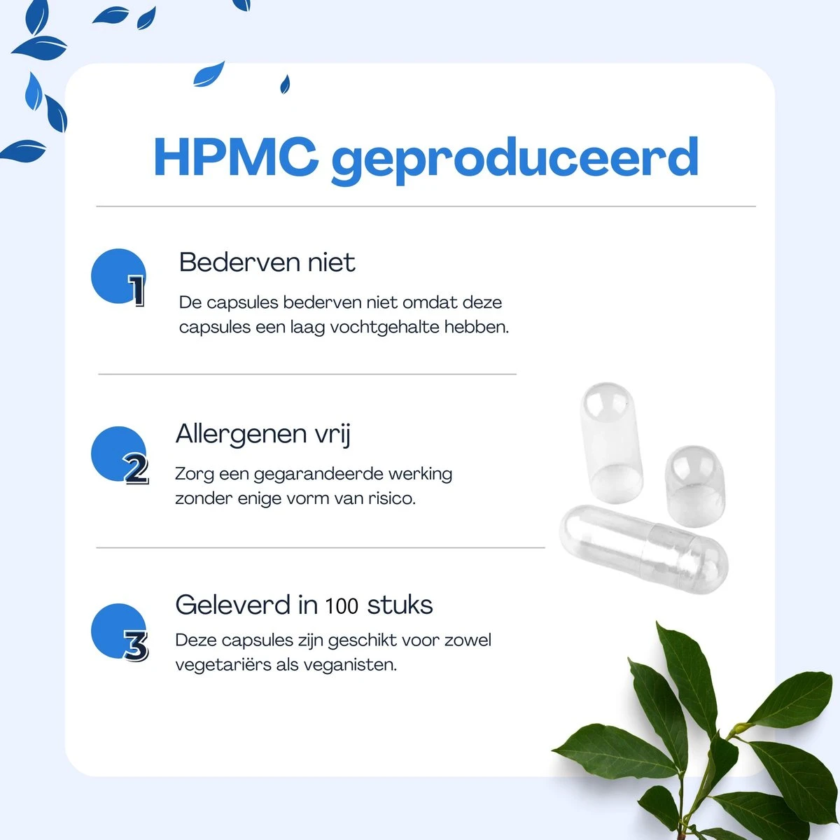 De lege capsules worden geleverd in zakjes van 100 stuks. Hieronder staat duidelijk omschreven waar de capsules van zijn gemaakt.