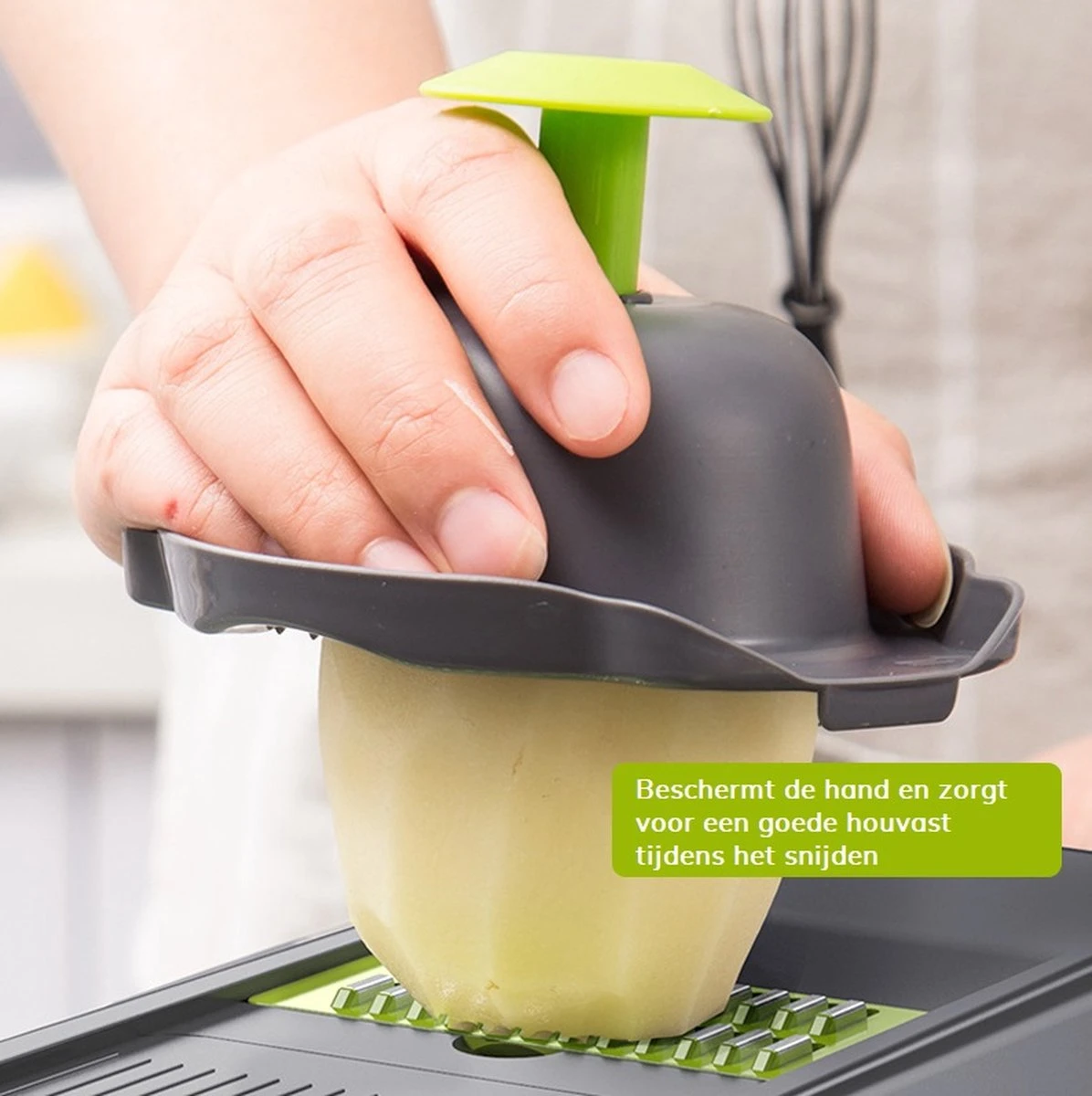 Groente en fruit snijden kan snel, veilig en met goede snijresultaten dankzij de Cuisine Club multifunctionele groentesnijder!