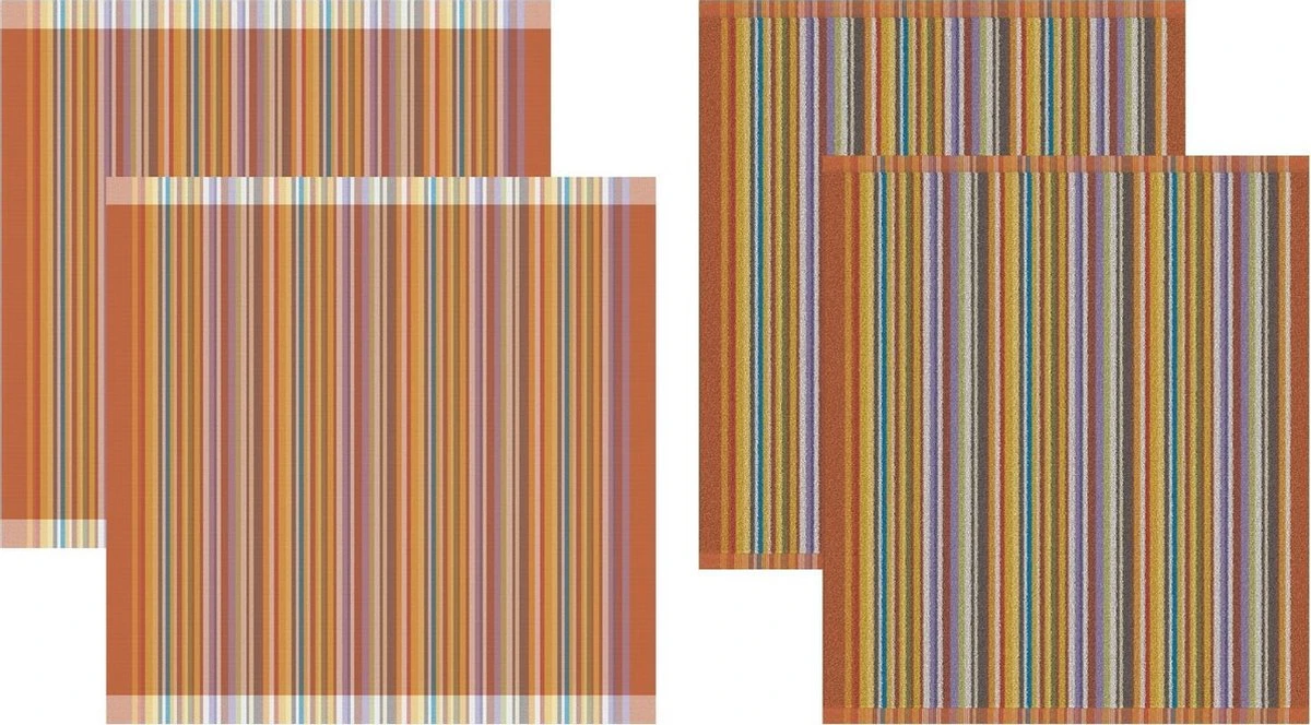 Breng een dosis vrolijkheid in de keuken met de DDDDD thee-en keukendoek Over the rainbow. Alle kleuren van de regenboog staan afgebeeld in een herkenbaar strependessin waarmee je een echt statement maakt. De ondertoon van de thee-en keukendoek heeft een mooie terra-kleur wat een extra warme uitstraling aan het geheel geeft.