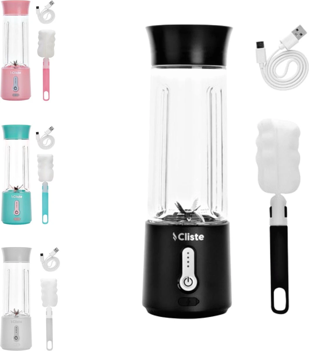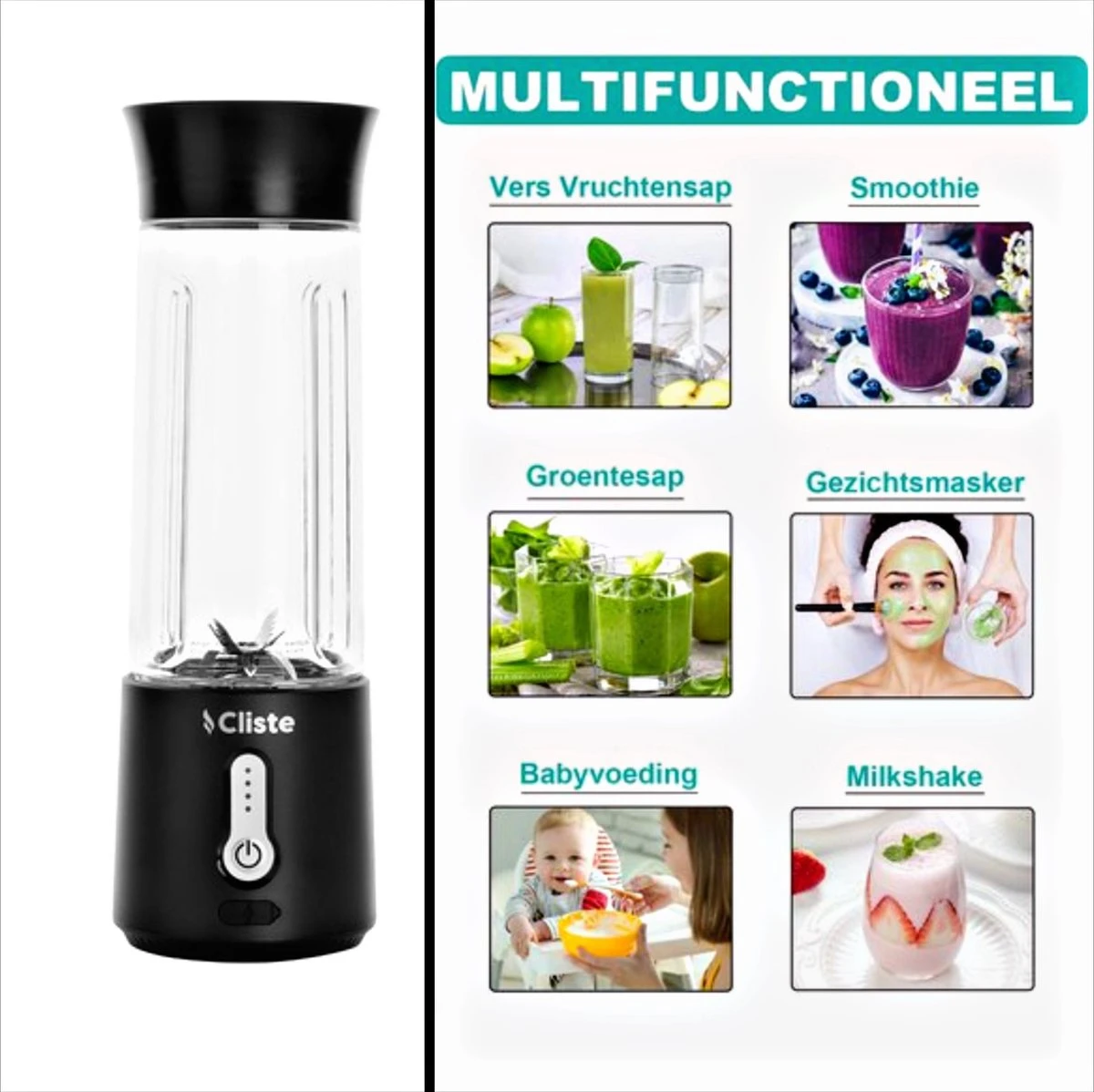 Draagbare Blender – Blender To Go – Blender Smoothie – USB Oplaadbaar – Afneembaar – Draadloos – Compact Blender – 500 ml – Mini Smoothie Maker – Fresh Juice Maker – Portable Blender – Zwart – Recepten inbegrepen.