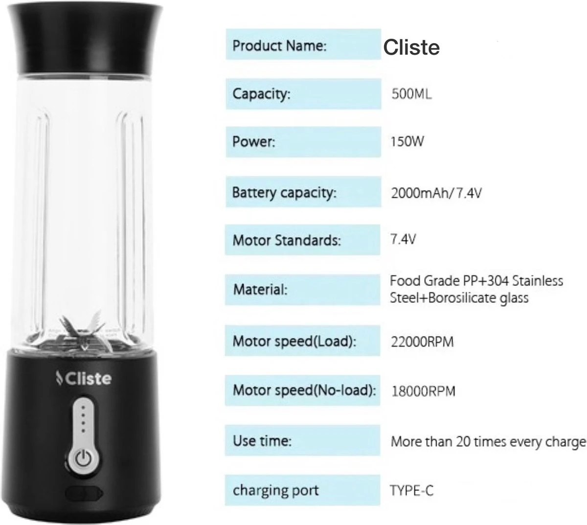 Dankzij zijn compact formaat en lichtgewicht neem je de draadloze blender makkelijk mee onderweg. Door zijn 500 ml inhoud heb jij een volledig sapje, smoothie, milkshake of babyvoeding. Gezond en lekker waar en wanneer jij wilt!