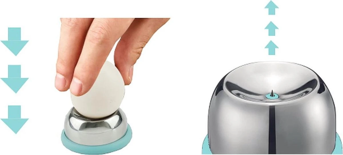 Natuurlijk kun een gaatje prikken met een naald of veiligheidsspeld, maar dit is niet zo eenvoudig en effectief als een goede eierprikker. Plaats het ei met de onderzijde op de eierprikker en druk deze omlaag. Door omlaag te drukken komt de priknaald naar boven en krijg je een perfect geplaatst gaatje in je ei. Nu de pan in en genieten maar!
