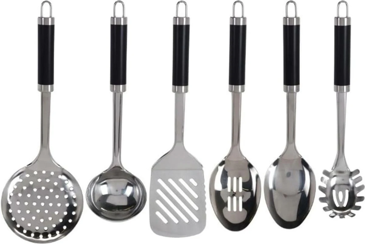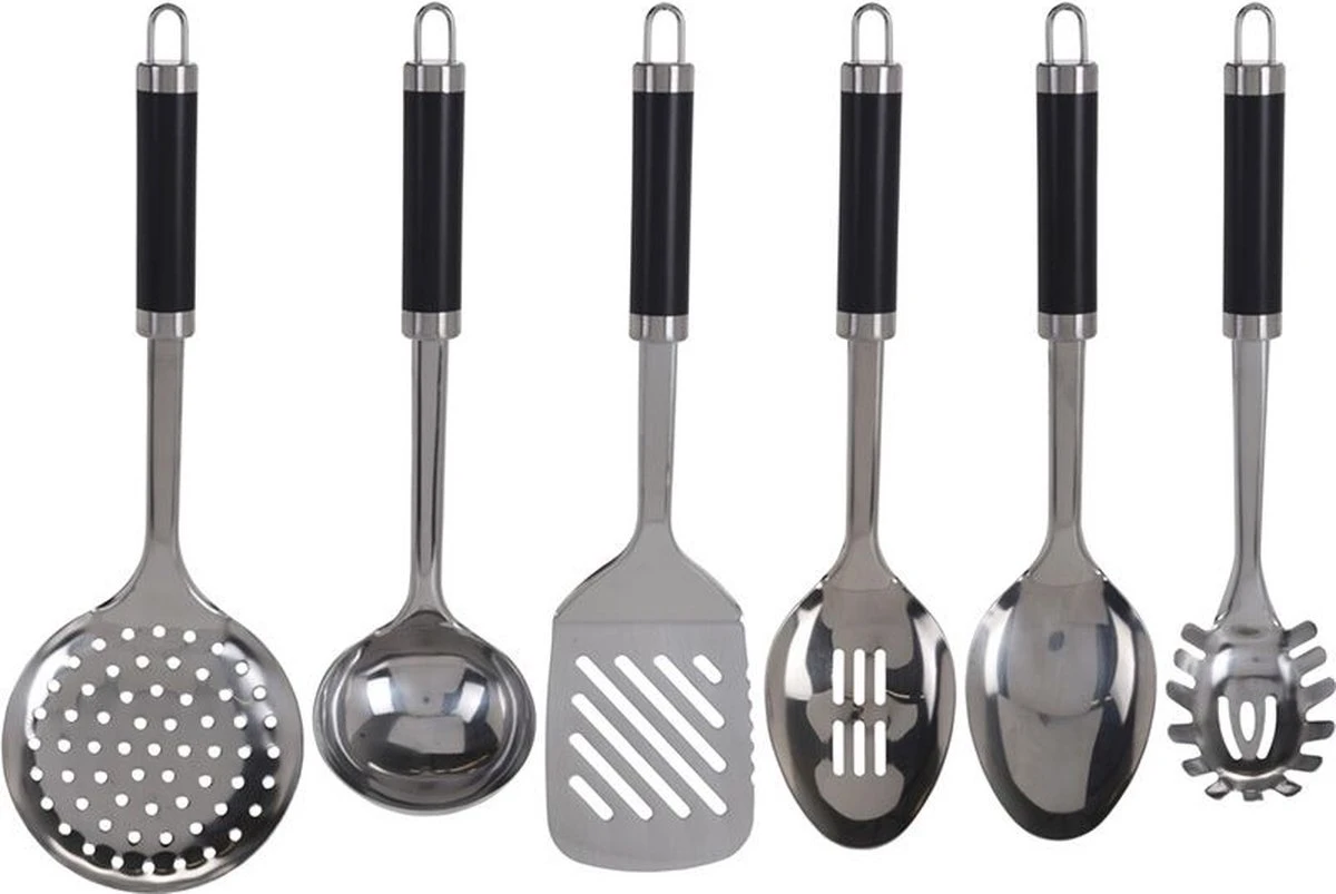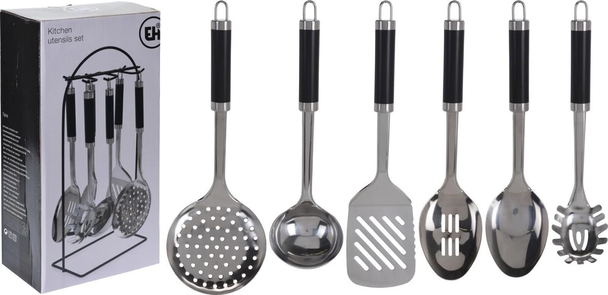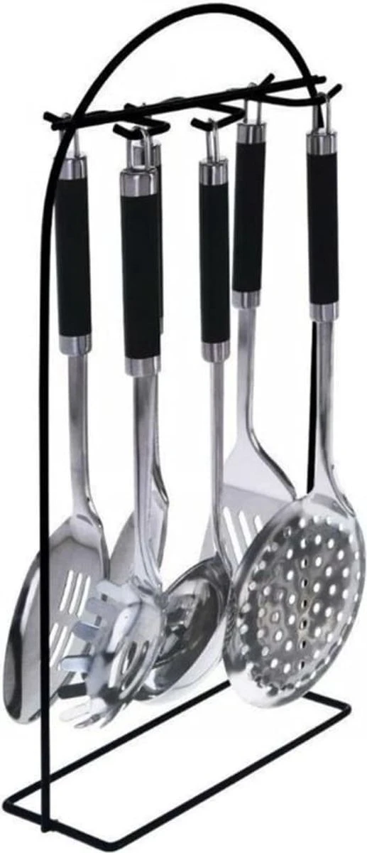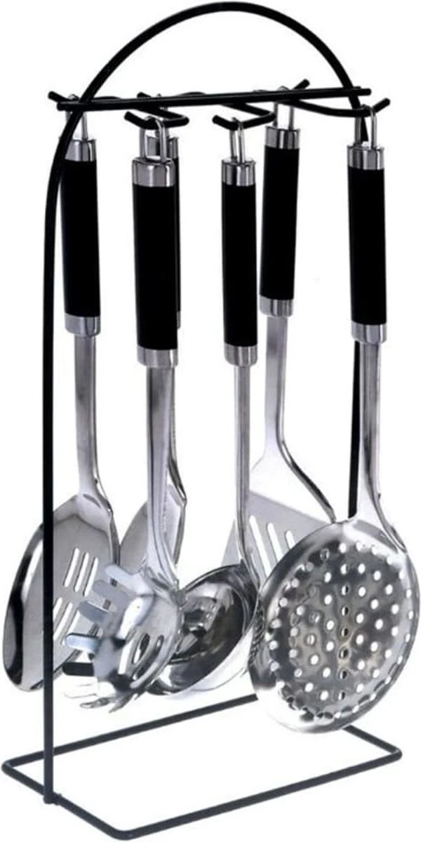 Deze 7-delige RVS keukengereedschap van Excellent Houseware bevat al het essentiele keukengerei. De set bevat eem houder, schuimspaan, spaghettilepel, soeplepel, opscheplepel, serveerlepel, vierkante spatel met kartelrand. De set is RVS en geschikt voor de vaatwasser. Gebruiki het gerei dat je nodig hebt en plaats het na afloop in de vaatwasser. De set kan netjes opgehangen worden aan de meegeleverde houder.