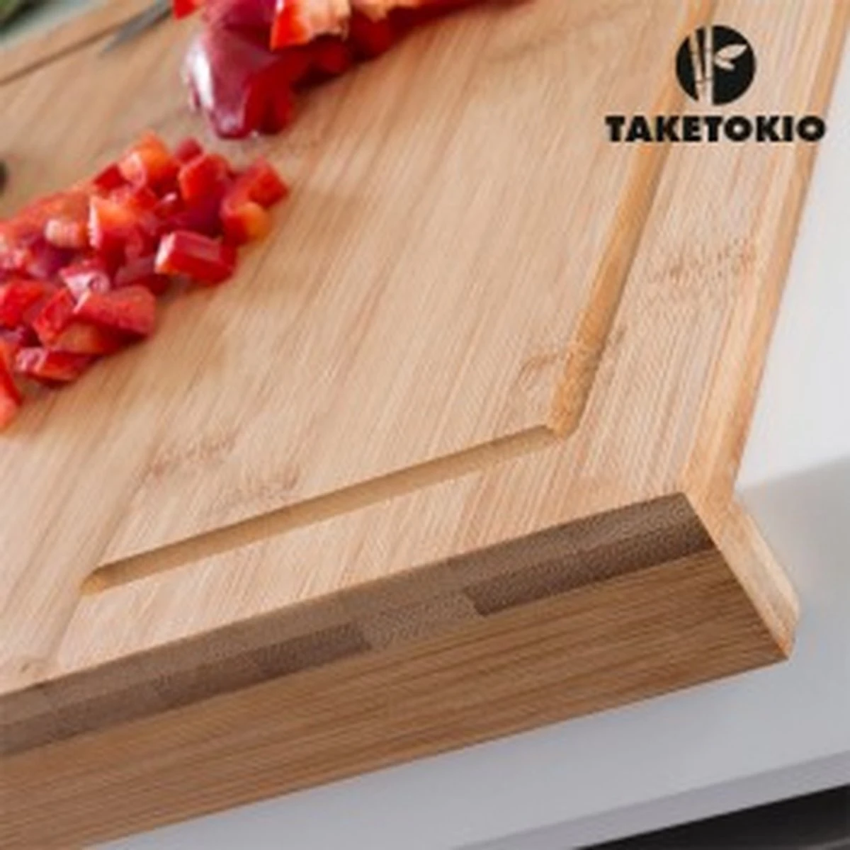 Deze fantastische bamboe snijplank voor het aanrecht is resistent en zeer nuttig voor elke keuken. Gebruik het om ingrediënten gemakkelijk te snijden en te hakken. Door zijn vorm, kunt u het gemakkelijk op het aanrecht in de keuken plaatsen. Gemaakt van bamboe in zen-stijl met een elegant handig design. Gemakkelijk schoon te maken. Afmetingen: ca. 45 x 35 x 1,3 cm (4 cm op de dikste zijde).