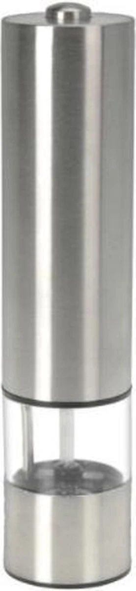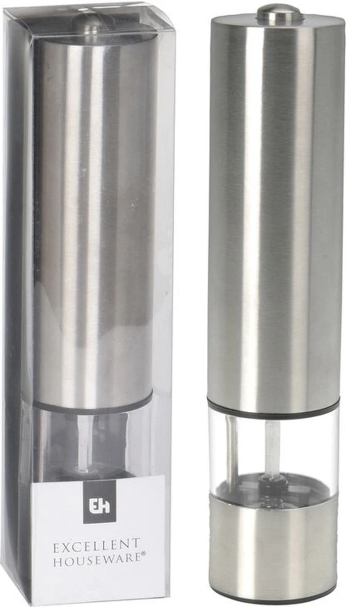 Elektrische pepermolen / zoutmolen van het merk Excellent Houseware. Deze pepermolen heeft een strak RVS design en geeft licht als je op de knop drukt. Ook ligt de pepermolen erg makkelijk in de hand.