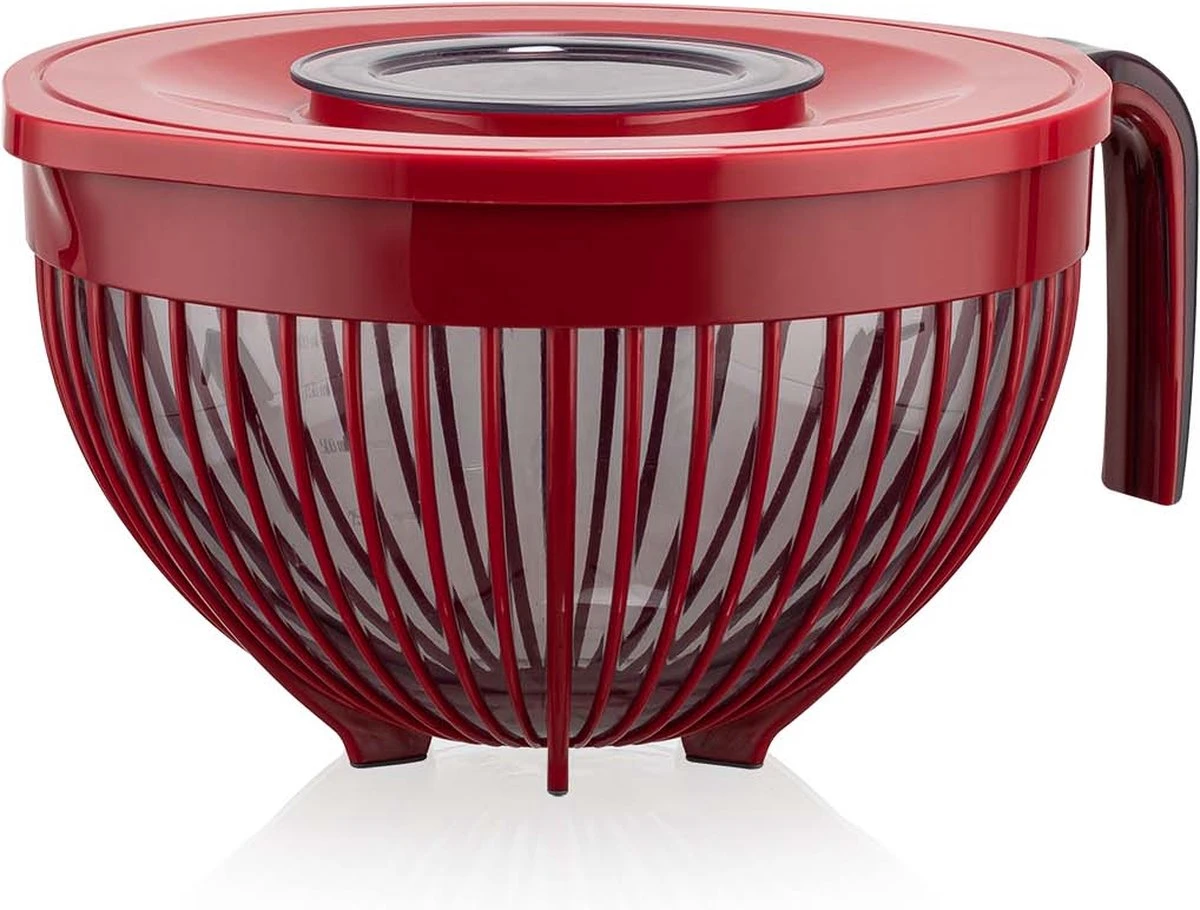 Maak eenvoudig en snel je beslag aan met deze strak vormgegeven beslagkom met een inhoud van 5 liter . Bovenzijde van het deksel is voorzien van een tweede wat kleinere deksel zodat je met je mixer kunt mixen zonder te spetteren .
