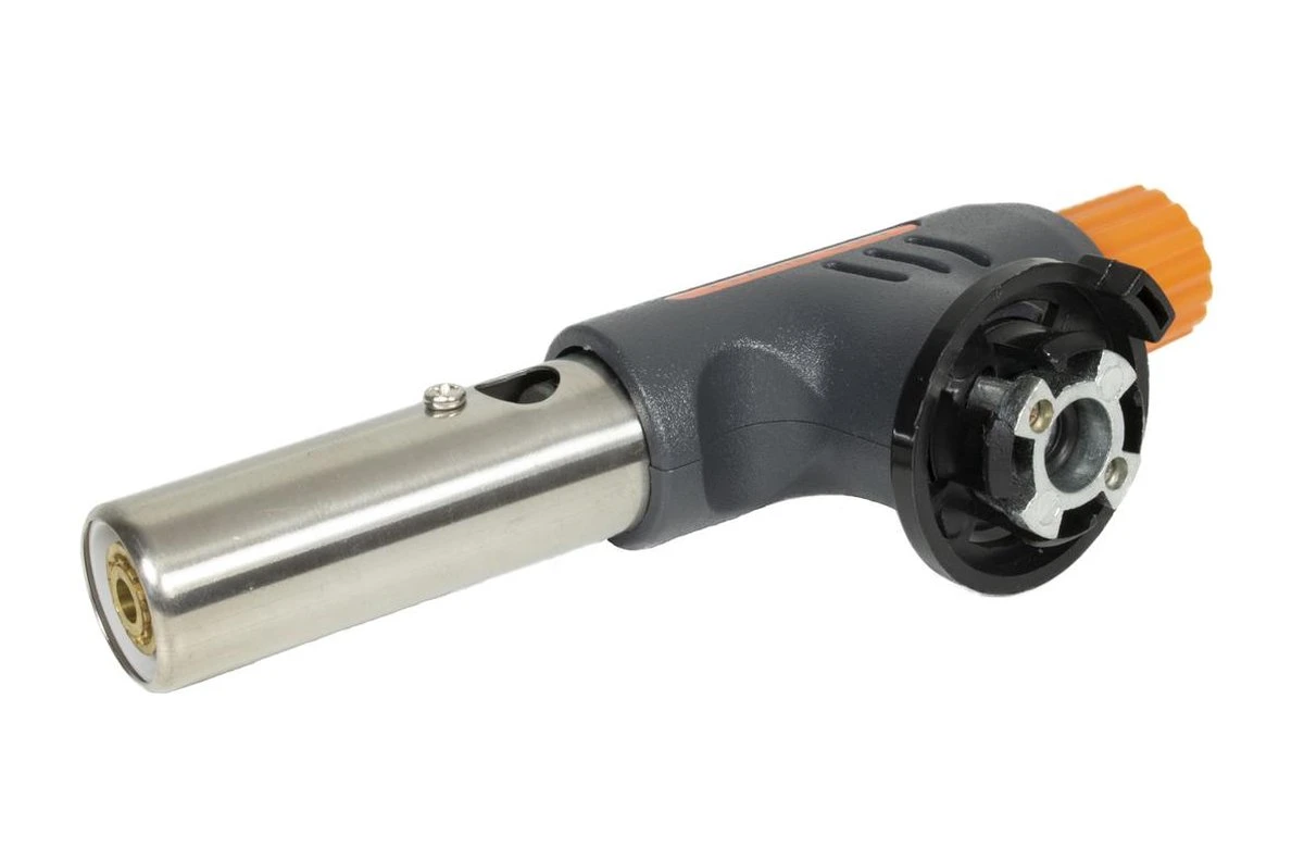 Dankzij de piëzo ontsteking brand de vlam met 1 druk op de knop, welke tevens functioneert als regeling voor de vlam. Brander rust comfortabel in uw hand dankzij een licht en ergonomisch ontwerp en is na een korte opwarm periode zelfs 360 graden te kantelen.