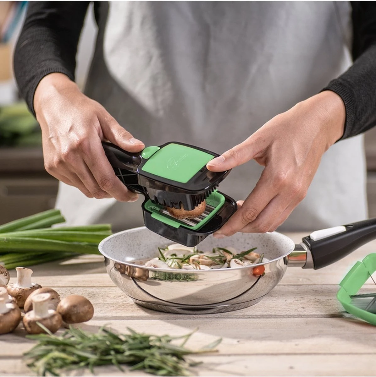 En nu voor het eerst hebben de makers 4 verschillende verwisselbare snij-opties gecombineerd in één compacte draagbare keukensnijder die 10 keer sneller is dan uw oude messen.