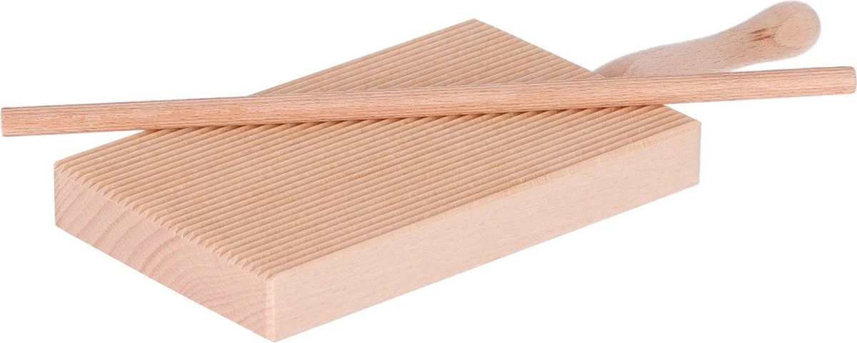 Met dit plankje kan je nu zelf eenvoudig verse gnocchi maken. Gnocchi is een populaire Italiaanse pastasoort die wordt gemaakt van aardappelen en meel. Je kunt het gewoon bij de supermarkt kopen, maar het is natuurlijk leuker en lekkerder om het zelf te maken. Het is enorm simpel en dit plankje is het enige wat je nodig hebt. Het plankje is gemaakt van beukenhout.