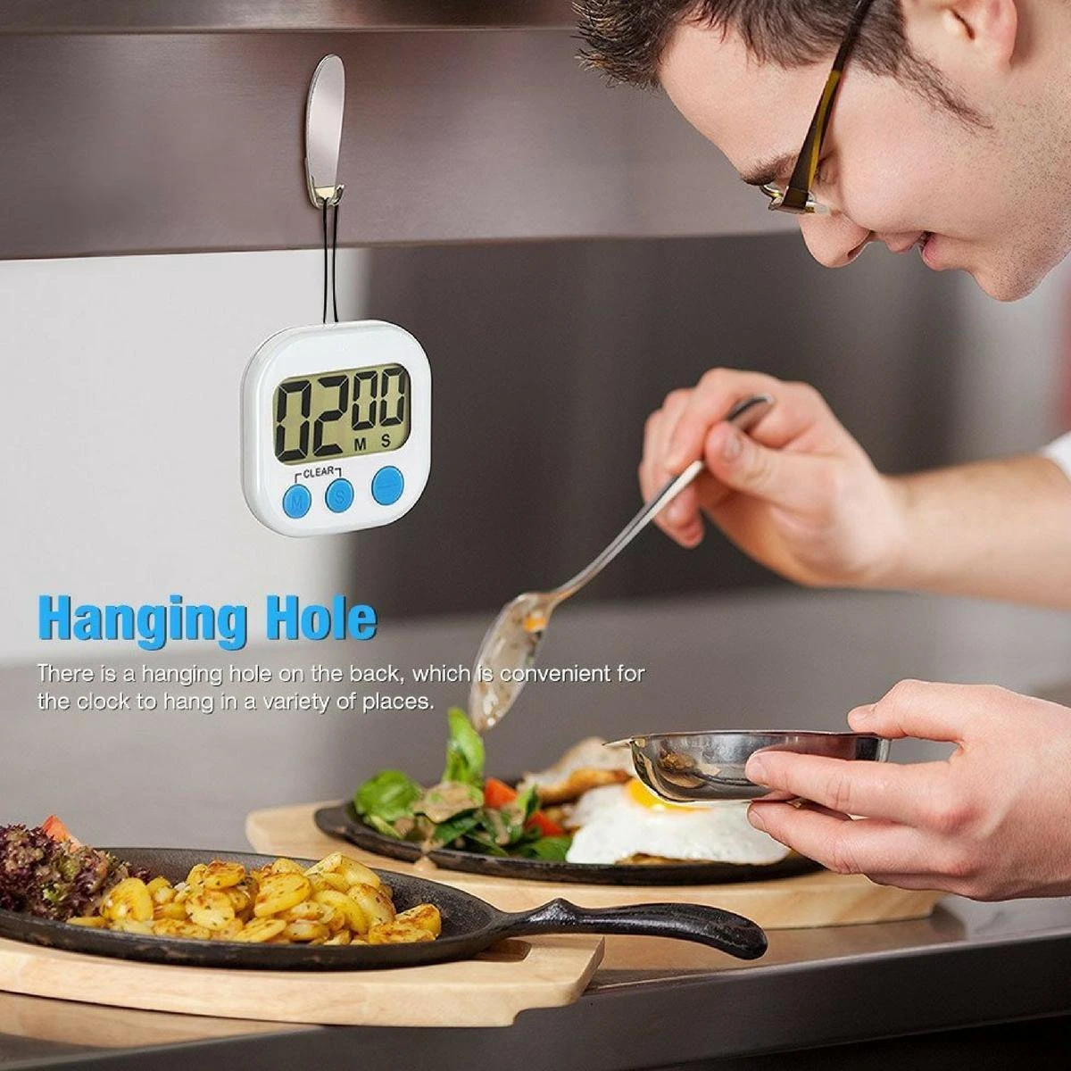 2. Met een touw om deze voedseltimer op te hangen aan een haakje of uw nek.