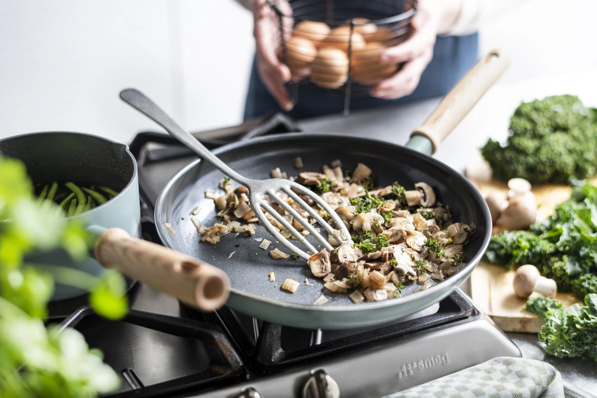 GreenPan is het merk voor iedereen die écht gezond wil koken! Alle potten en pannen hebben een gezonde keramische Thermolon™ antikleeflaag. Die is gemaakt met natuurlijke grondstoffen, zoals zand en bevat géén PFAS. Iets wat de meeste merken van antikleefpannen wél nog steeds doen. Met de keramische antikleeflaag van GreenPan ben je dus zeker dat er geen toxische stoffen kunnen vrijkomen, zelfs als je graag kookt op hoge temperaturen.