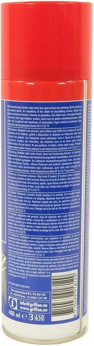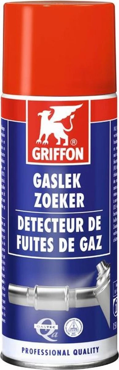 Gaslekkages opsporen? Gebruik daarvoor de Griffon gaslekzoekspray! Eenvoudig en snel gaslekkages opzoeken zonder veel gedoe. Deze Griffon spuitbus heeft een inhoud van 150 ml. Eenvoudig lekkages opzoeken op las- en soldeerverbindingen, gasslangen, koppelingen, kranen enzovoort. ‚ De spray is niet corrosief, veroorzaakt geen roestvorming, niet brandbaar, niet giftig en is in alle standen te verspuiten. Is er een lek? Op de plaats van het lek zullen belletjes onstaan. Hierdoor weet u exact waar de lek zich bevind.