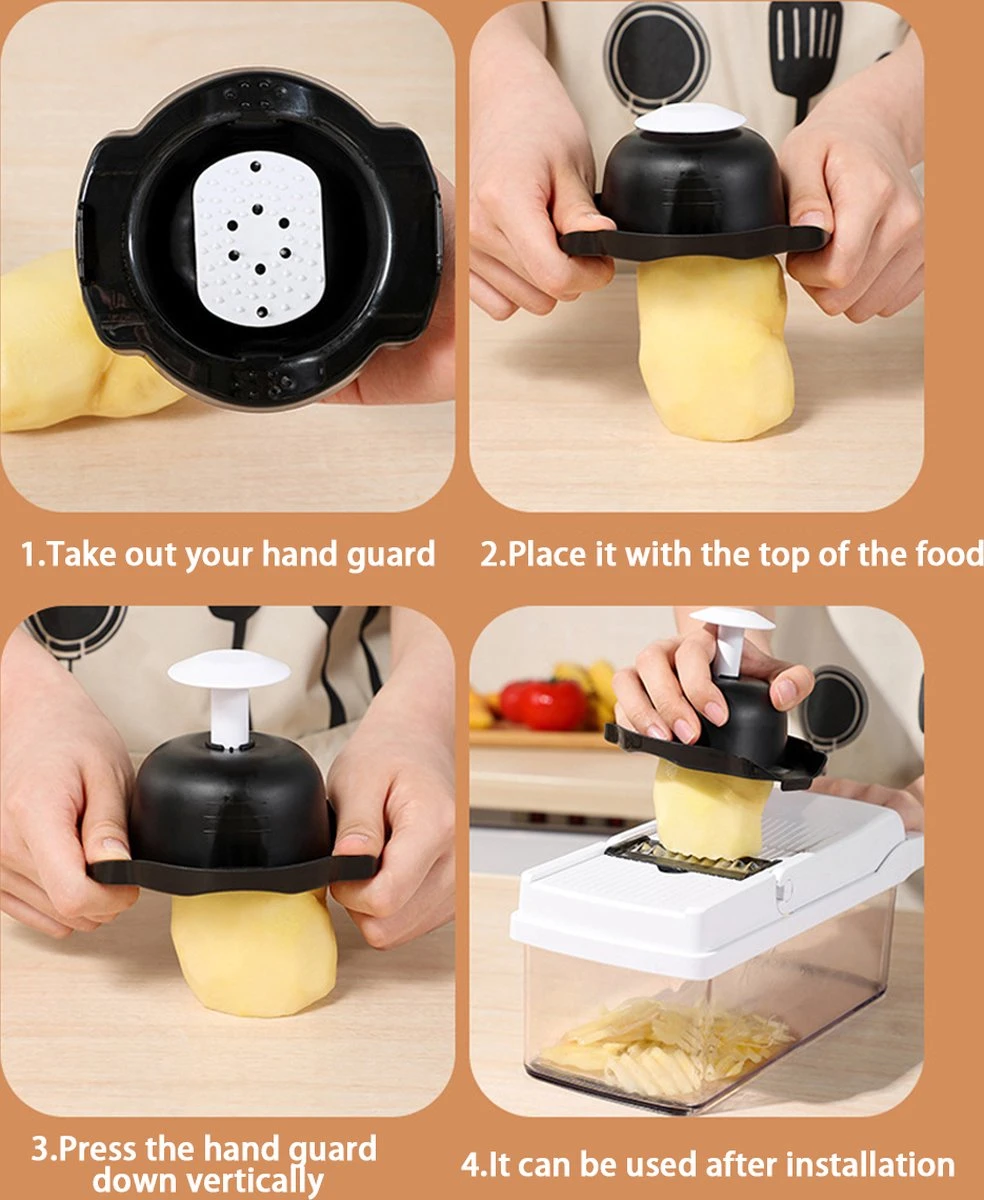 Ook voor mensen met kracht verlies in handen en/of vingers is bij deze groentesnijder rekening gehouden. Zoals eerder beschreven, waar de meeste mandolines 1 snij optie op het deksel hebben, is deze voorzien door een 2 in 1 snij optie. Er hoeft dus niet vaak van mes verwisselt te worden. Door de lengte is er amper kracht nodig om de groente door te drukken. Dit alles maakt deze moderne vernieuwde set compleet.