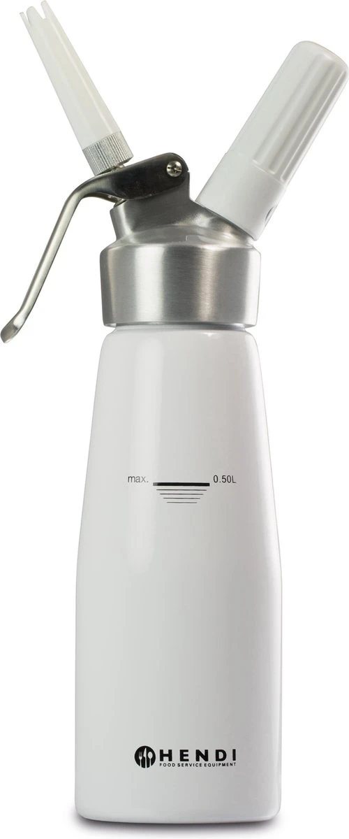 Met dit Slagroomapparaat van de Hendi spuit u eenvoudig en snel heerlijke verse slagroom op uw gebak en taarten. Wordt compleet geleverd met een set van 3 polypropyleen spuitmondjes en schoonmaakborsteltje.