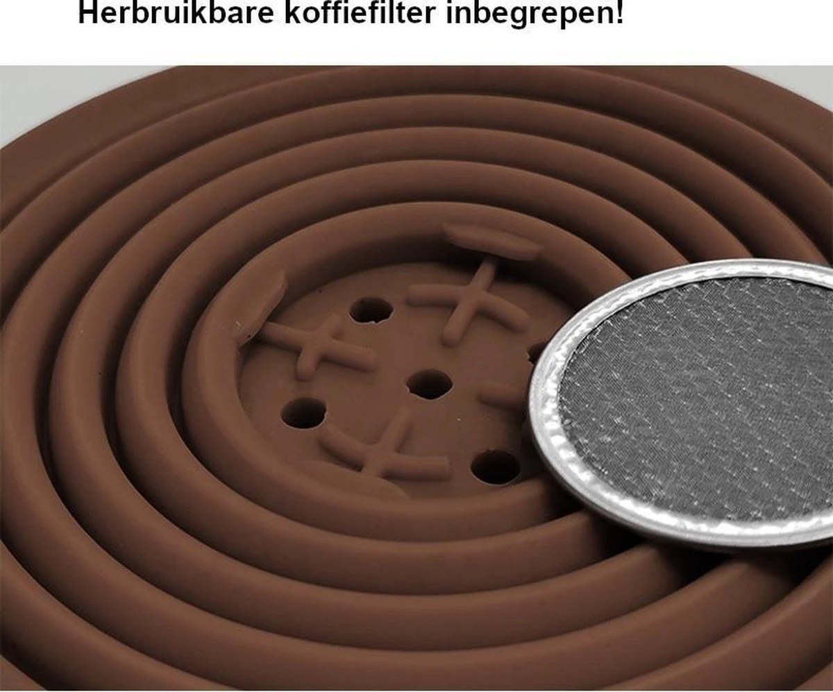 Nu met gratis extra katoenen koffiefilter. Deze kan je gebruiken, naast de bijgeleverde metalen filter, voor een nog snellere doorlooptijd van je koffie!