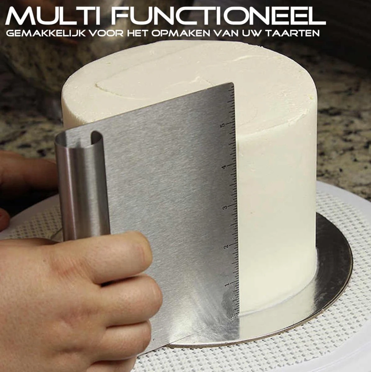 Deze roestvrijstalen groente snijder en deegverdeler gebruikt u voor het afwerken van o.a. icing en crèmes op taarten.
