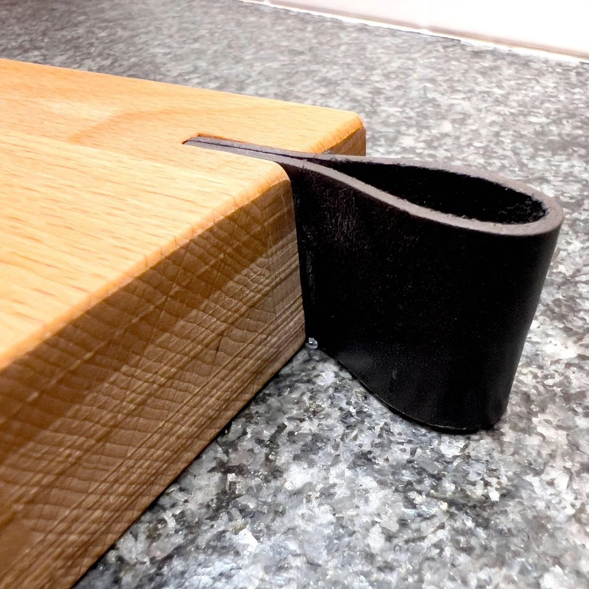 Onze prachtig ontworpen, stijlvolle snijplank is een perfecte aanvulling op je keuken, gemaakt van massief AA-beukenhout, volledig afgewerkt en behandeld met olie om een lange levensduur te garanderen. De snijplank kan opgehangen worden aan de 100% lederen riem zodat je deze niet op een vochtig aanrecht hoeft te zetten en om ruimte te besparen.