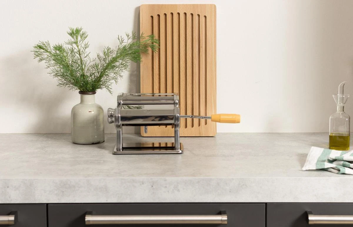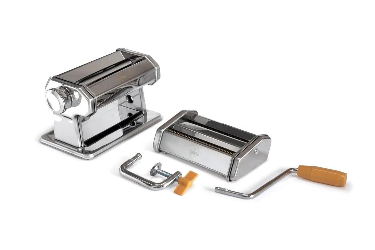 Met deze pastamachine van Inno Cuisinno wordt zelf verse pasta maken een fluitje van een cent. Niet alleen is verse pasta extra lekker, het is ook nog eens leuk om te doen. Met deze pastamachine maak je eenvoudig lasagne, fetuccine en tagliolini. Met de grote knop aan de zijkant stel je de gewenste deegdikte in, en de tafelklem houdt de machine stevig op zijn plaats tijdens het draaien. De kop van de machine is verwisselbaar, waardoor je je machine – indien gewenst – nog kunt uitbreiden met het los verkrijgbare opzetstuk om ravioli te maken. Een duidelijke Nederlandstalige gebruiksaanwijzing is inclusief.