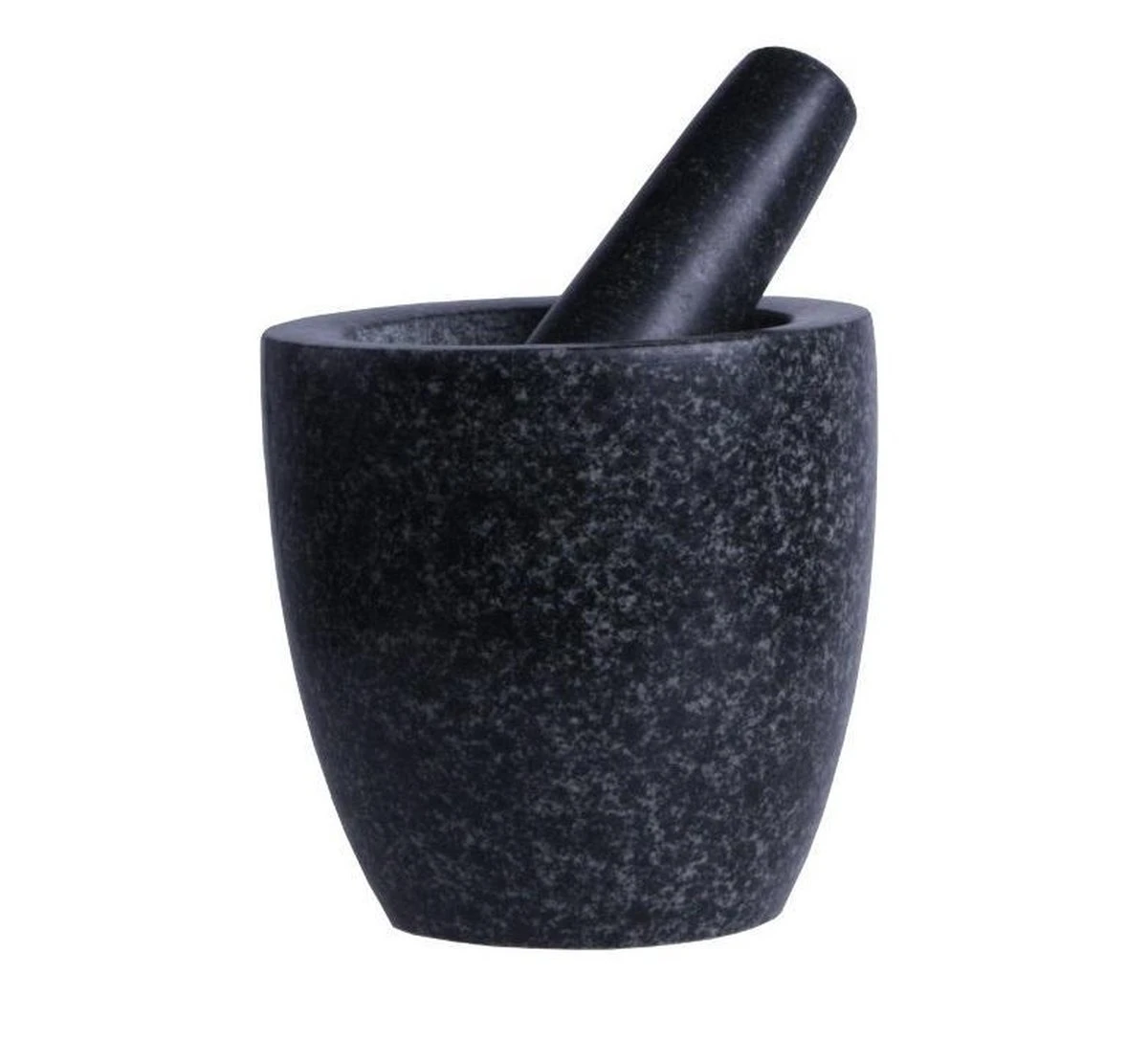 Deze zware granieten vijzel van Inno Cuisinno is perfect voor het fijnmalen van kruiden, specerijen, knoflook en meer. Dankzij het harde graniet is het eenvoudig om harde ingrediënten als peperkorrels, komijn en meer fijn te malen en bij het fijnstampen komen geur en smaak optimaal vrij. Gebruik de vijzel ook voor pesto, currypasta, knoflookmayonaise en dressings. Was de vijzel na gebruik met de hand, zonder afwasmiddel.