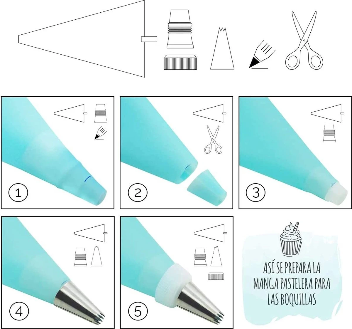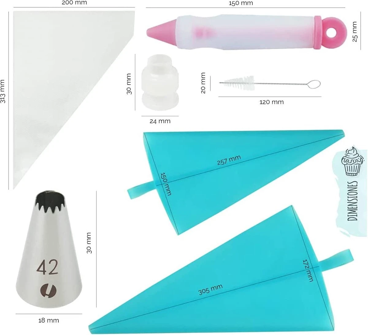 - All-in-one set: naast het opzetstuk voor spuitbagage, bevat deze set 2 siliconen spuitzakken, 10 wegwerpspuitzakken, 2 adapters, een decoratiestift, een reinigingsborstel en een praktische opbergdoos. Bovendien wordt een boekje ter uitleg meegeleverd