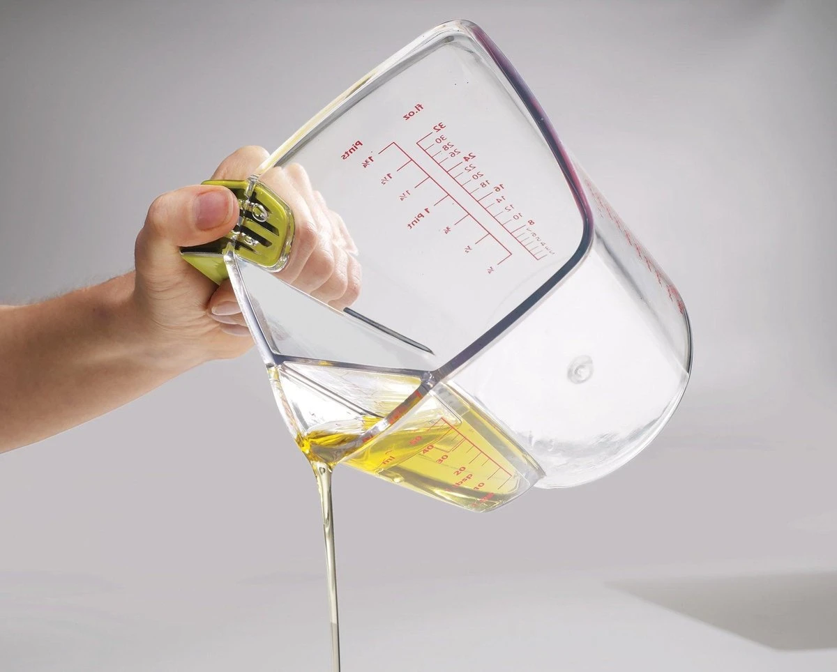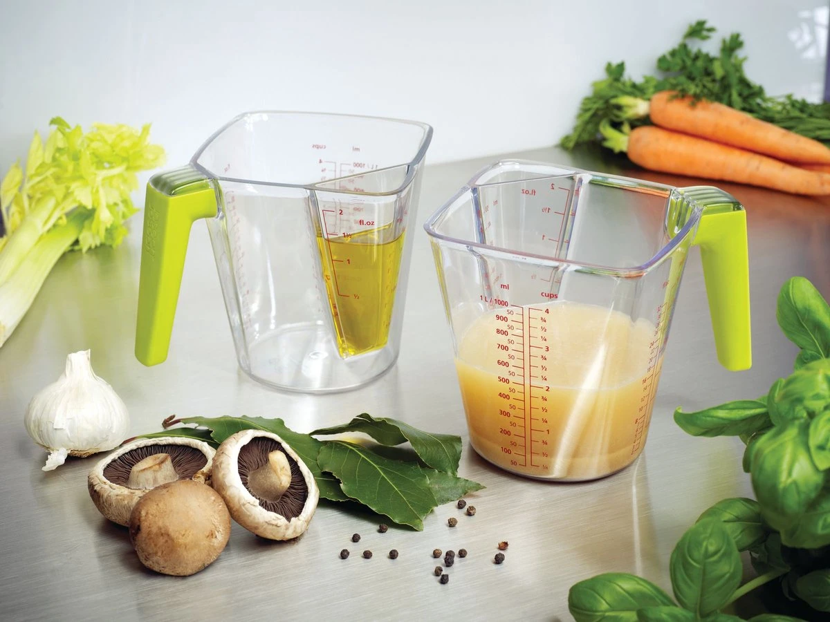 Met deze maatbeker van Joseph Joseph heb je geen andere maatbeker meer nodig, want met deze kun je zowel grote hoeveelheden afmeten, als kleinere. Aan de zijkant van de grote maatbeker is namelijk een tweede reservoir gemaakt om kleine hoeveelheden vloeistoffen in af te kunnen meten.