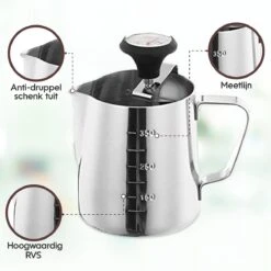 RoiCuisine® Melkopschuimkan – Met Thermometer – 350ml – Melkkannetje – Barista – RVS
